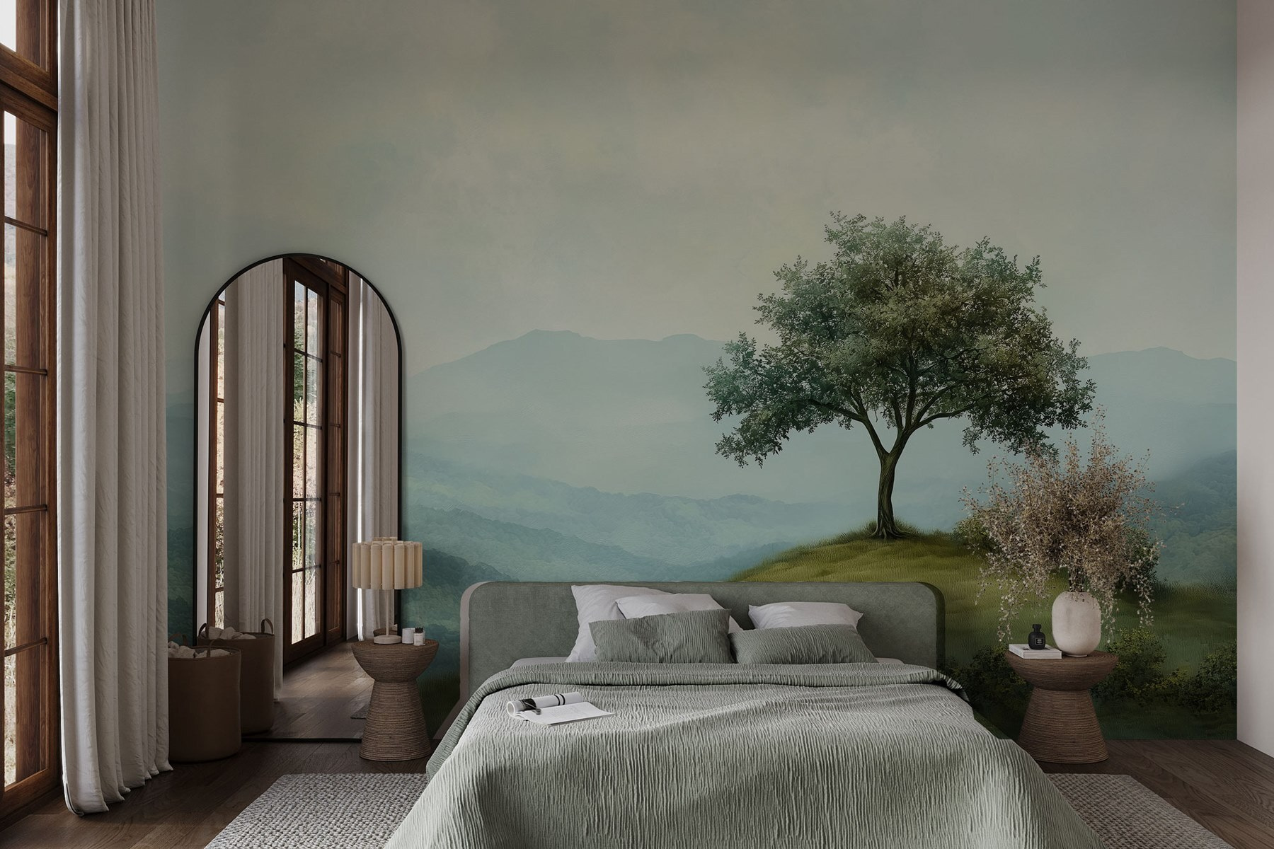 Képzelje el, hogy belép egy hangulatos szobába, és azonnal érzi, ahogy a nyugalom hullámai átjárják. Ez a varázsa a “Falfestmény Fa a dombon” varázsának. Ez a gyönyörű darab egy nyugodt fát ábrázol, amely méltóságteljesen ül egy szelíd dombon, a háttérben pedig dombos hegyek ölelik körül. Olyan, mintha a békés természet egy darabját hoznád be a házadba, szúnyogok nélkül!