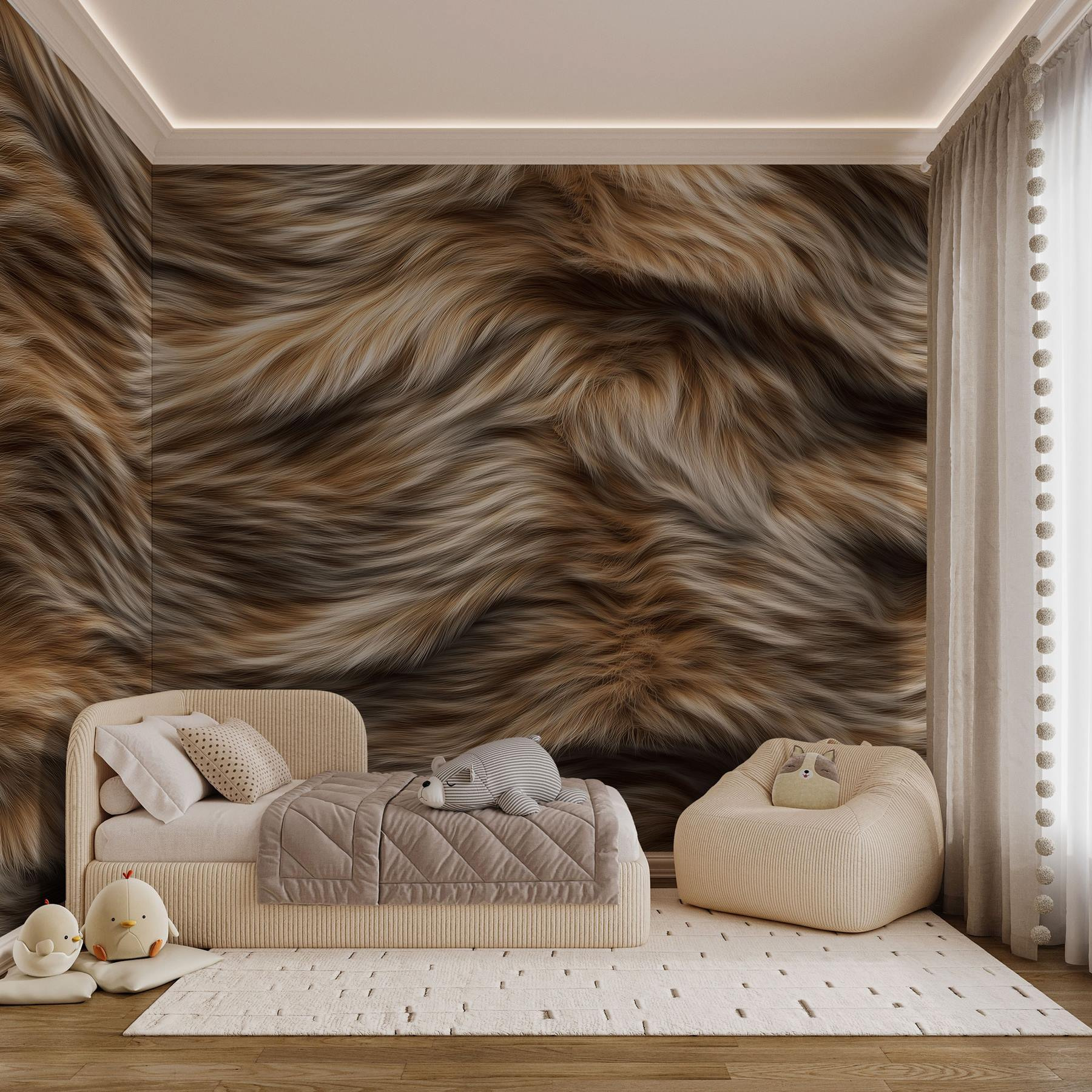 Alakítsa át terét ezzel a lenyűgöző falfestménnyel, amely lágy, áramló textúrákat tartalmaz meleg árnyalatokban, amelyek egyszerre hangulatosak és hívogatóak. Képzelje el, hogy belép egy olyan szobába, ahol a falak kényelmet sugároznak, mint egy kedvenc pulóvere egy hűvös napon. Tökéletes a macskabarátoknak vagy bárkinek, aki értékeli a természet finom szépségét. A falak olyanok lesznek, mint egy gyengéd ölelés, amely bármilyen hétköznapi teret bájos menedékké varázsol.
