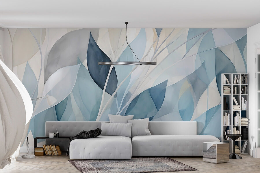 Alakítsa át tereit a “Lágy árnyalatú áttetsző levelekkel”. Ez a falfestmény tökéletesen megragadja a levelek szelíd táncát egy nyugodt palettán, olyan hangulatot teremtve, amely olyan frissítő, mint egy nyári szellő. Képzelje el, hogy erre a megnyugtató látványra ébred – a lágy kékek és tompa zöldek keverékére, amely olyan, mintha a természet most lépett volna be. Olyan, mintha egy békés erdőt hívnál meg a nappalidba.