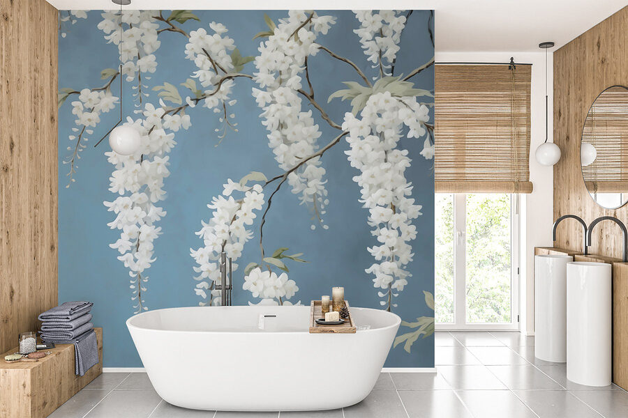 Alakítson át egy egyszerű falat egy nyugodt meneküléssé ezzel a lenyűgöző falfestménnyel, amelyen fehér virágok kecsesen hullámzanak egy szelíd kék háttéren. Olyan, mintha egy kis természetet hozna be a házba – a bosszantó pollenek nélkül! Képzelje el, ahogy reggelente a kávéját kortyolgatja, a napfény beáramlik, és úgy érzi, mintha egy virágzó fa alatt ülne. A virágok lágy eleganciája egy csipetnyi bájt kölcsönöz, és minden teret még hívogatóbbá tesz. Tökéletes nappaliba, hálószobába vagy akár hangulatos olvasósarokba; édes nyugalmat suttog. Ráadásul remek beszélgetésindító – ki ne szeretne egy ilyen gyönyörű műalkotásról beszélgetni a falán?