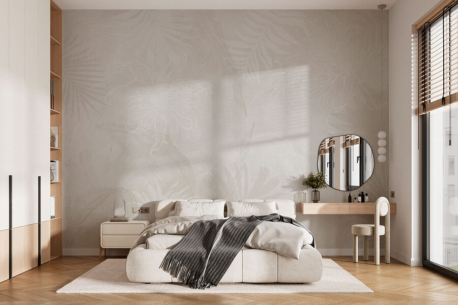 Bármilyen teret alakítson át nyugodt oázissá ezzel a lenyűgöző falfestménnyel, amelynek finom fehér hátterét elegáns levelek díszítik. Mintha a természetet hozná be a házba – a bosszantó rovarok nélkül. Képzelje el, hogy egy olyan szobában ébred, ahol a pálmalevelek lágy körvonalai pihenést és nyugodt hangulatot sugároznak. Tökéletes az olvasósarokba, amelyről már régóta álmodtál, vagy akár az előszobába is játékossá teheted. Egy kis természetterápia senkinek sem árt, nem igaz? A lágy tónusok gyönyörűen keverednek szinte bármilyen dekorációval, friss, légies hangulatot kölcsönözve a térnek. Hidd el, a falaid meg fogják köszönni!