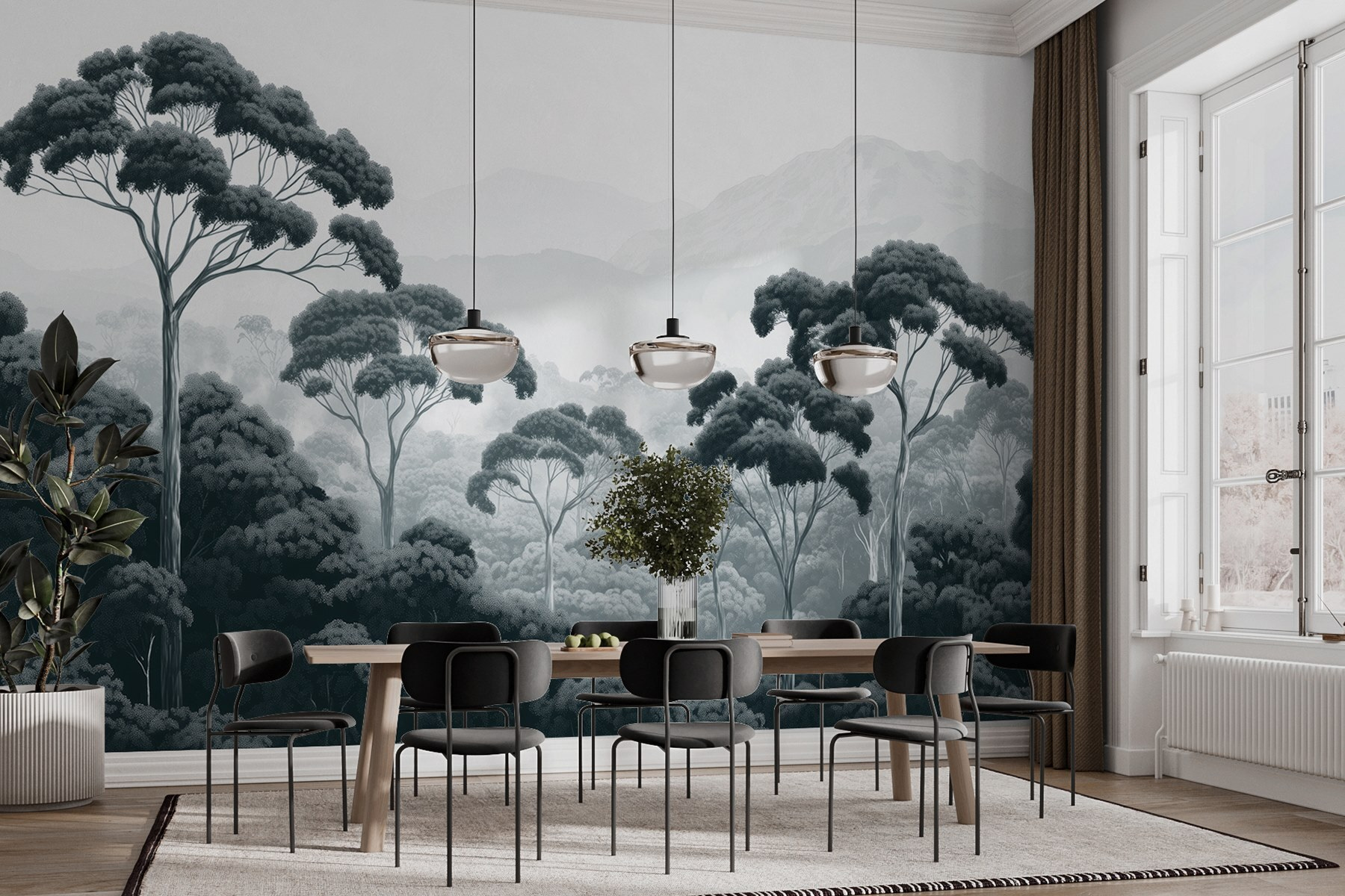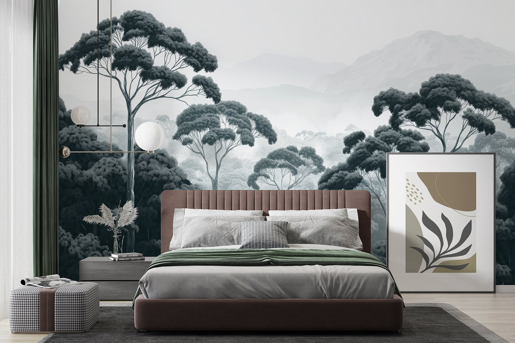 Alakítson át bármilyen szobát nyugodt meneküléssé ezzel a lenyűgöző falfestménnyel, amely egy erdőt ábrázol, magasra törő fákkal és ködös hegyekkel. Képzelje el, ahogy a reggeli kávéját kortyolgatja, miközben a természet veszi körül – nincsenek bosszantó szúnyogok, csak tiszta hangulat! A műalkotás nyugtató fekete-fehér palettával rendelkezik, amely tökéletes egy hangulatos, elgondolkodtató tér kialakításához. Akár a nappaliban, akár az otthoni irodában, ez a falfestmény inspirálhatja az erdei túrázásról vagy egy jó könyvvel való összebújásról való álmodozást. Olyan, mintha egy szeletet kapna a természetből közvetlenül a falán. Ki gondolta volna, hogy a természet ennyire elegáns lehet?