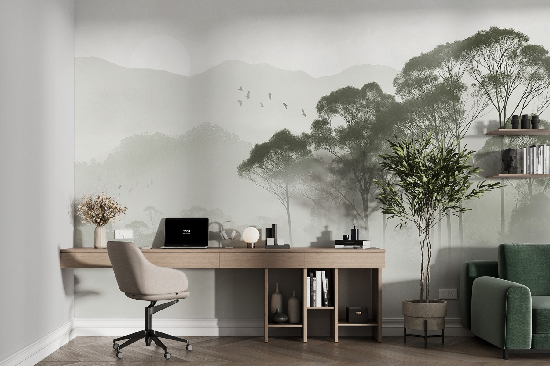 Alakítsa át terét a varázslatos “Birds Flying Over Trees” falfestménnyel. Képzelje el, hogy egy ködös reggelbe lép, ahol a zöld gyengéd árnyalatai lágy szürkével játszanak, nyugodt hátteret teremtve az álmodozó pillanatokhoz. Olyan, mintha a természet súgott volna egy titkot a szobádba! Képzelje el, ahogy felébred, és a szárnyaló madarak üdvözlik, mintha meghívnák Önt, hogy csatlakozzon a repülésükhöz. Ez a falfestmény könnyedén illeszkedik a hangulatos dekorációhoz, így tökéletes meneküléssé válik anélkül, hogy elhagyná otthonát. Ráadásul ki ne szeretné az erdő nyugtató hangulatát, nem igaz? Akár melegséget kölcsönöz egy olvasósaroknak, akár életet lehel egy unalmas folyosóba, biztos, hogy egy kis vándorlási vágyat ébreszt. Rajta, hagyja, hogy a falak kifejezzék a természet iránti szeretetét!