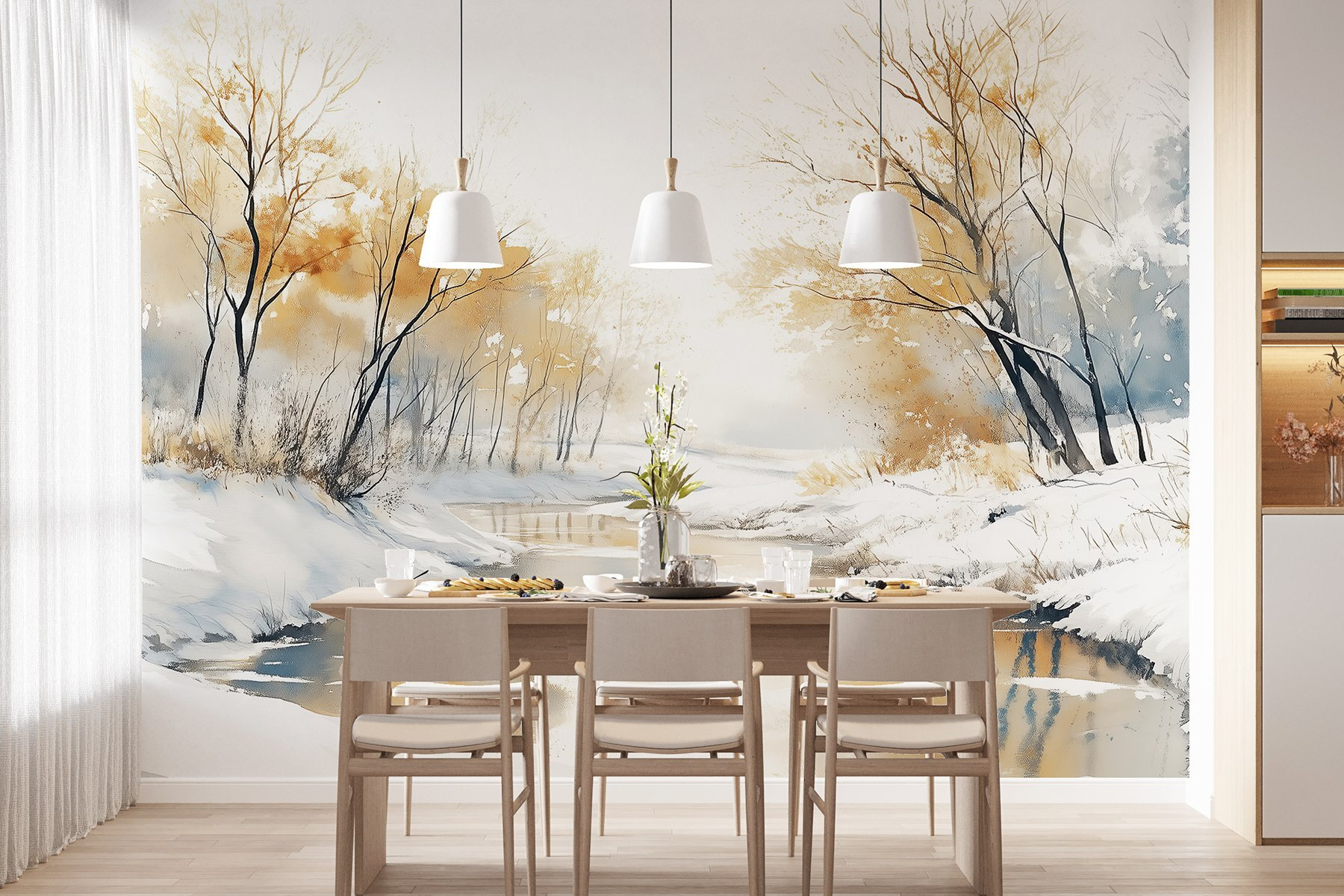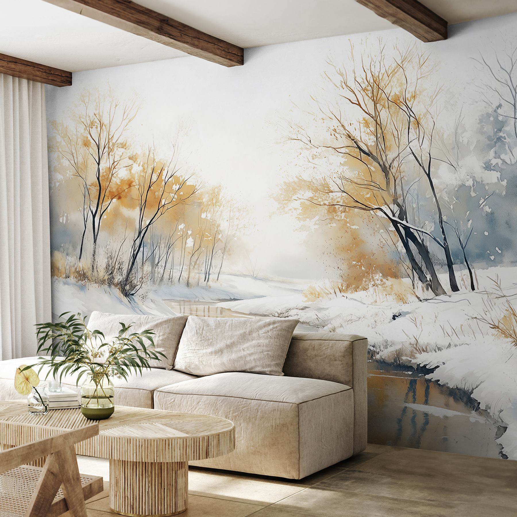 Képzelje el, hogy minden alkalommal, amikor belép a szobájába, egy havas csodavilágba lép. Ez a “Fotótapéta River with Snow and Trees” falfestmény úgy ragadja meg ezt a nyugodt hangulatot, mint egy hangulatos takaró egy hűvös napon. A lágy akvarell árnyalatok finoman keverednek, és egy békés folyójelenetet hoznak létre, amelyet finom fák kereteznek, és mindez hóréteggel van beporozva.