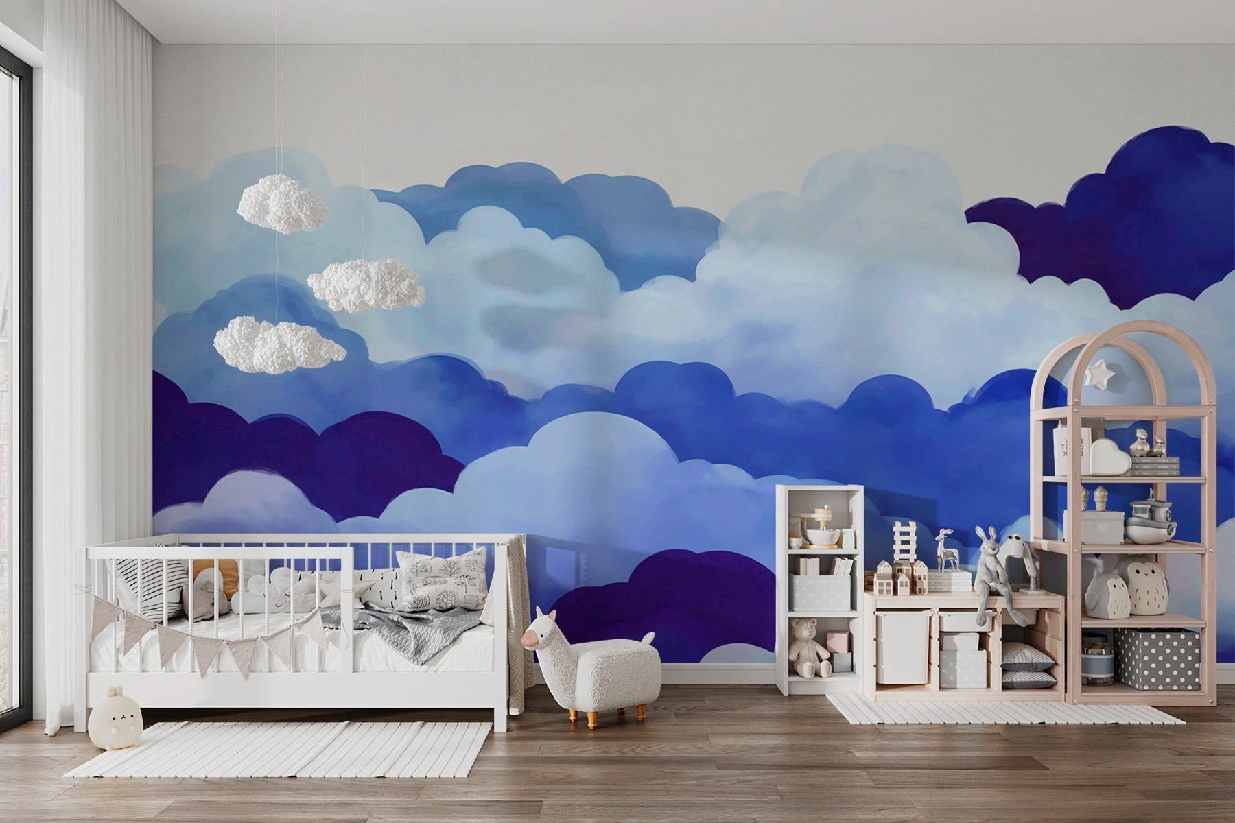 Alakítsa át terét egy álomszerű meneküléssé ezzel a lenyűgöző falfestménnyel, amely az égen táncoló felhőket ábrázolja. Képzelje el, hogy lágy kék és gyengéd fehér színekre ébred, mintha maga a természet ölelne magához. Tökéletes háttere lehet egy pihentető olvasósaroknak vagy egy nyugodt hálószobának. Képzelje el magát kávét szürcsölgetve, a végtelen felhőket bámulva, és talán még arról is álmodozik, hogy hová úszhatnak el. Az akvarell hatás művészi jelleget kölcsönöz, amely egyszerre megnyugtató és inspiráló. Ez a falfestmény arra invitál, hogy minden nap megállj, vegyél egy nagy levegőt, és érezd magad felemelőnek. Nem rossz módja bármelyik fal feldobásának, igaz?