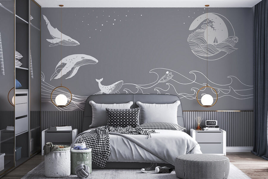 Merülj el a szeszélyes világba ezzel a falfestménnyel, amelyen egy fenséges bálna és egy magányos ember navigál az óceánon. Mintha a nyugalom szelíd hullámai mosnák át a szobát, emlékeztetve mindenkit az élet hatalmas kalandjaira. Képzelje el, ahogy teát szürcsölgetve bámulja ezeket a kecses bálnákat – hát nem szikrázik az öröm? A lágy árnyalatok és az áramló vonalak nyugodt légkört teremtenek, amely tökéletes a tengerparti kiruccanásokról vagy meghitt éjszakákról való álmodozáshoz. Ez a természet elbűvölő tánca, amelytől minden vendég megkérdezi majd, hogy hol találtál egy ilyen varázslatos darabot!