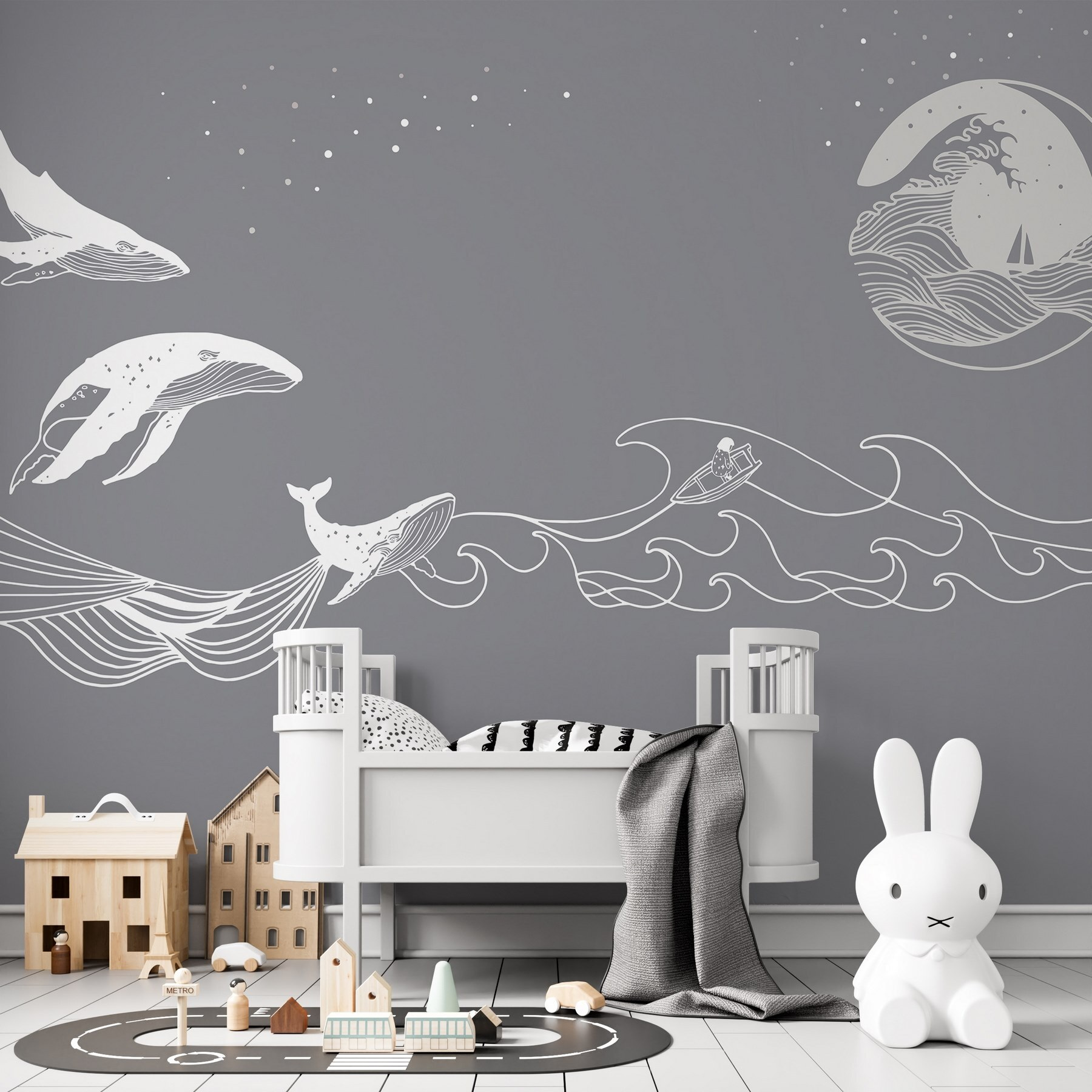 Merülj el a szeszélyes világba ezzel a falfestménnyel, amelyen egy fenséges bálna és egy magányos ember navigál az óceánon. Mintha a nyugalom szelíd hullámai mosnák át a szobát, emlékeztetve mindenkit az élet hatalmas kalandjaira. Képzelje el, ahogy teát szürcsölgetve bámulja ezeket a kecses bálnákat – hát nem szikrázik az öröm? A lágy árnyalatok és az áramló vonalak nyugodt légkört teremtenek, amely tökéletes a tengerparti kiruccanásokról vagy meghitt éjszakákról való álmodozáshoz. Ez a természet elbűvölő tánca, amelytől minden vendég megkérdezi majd, hogy hol találtál egy ilyen varázslatos darabot!
