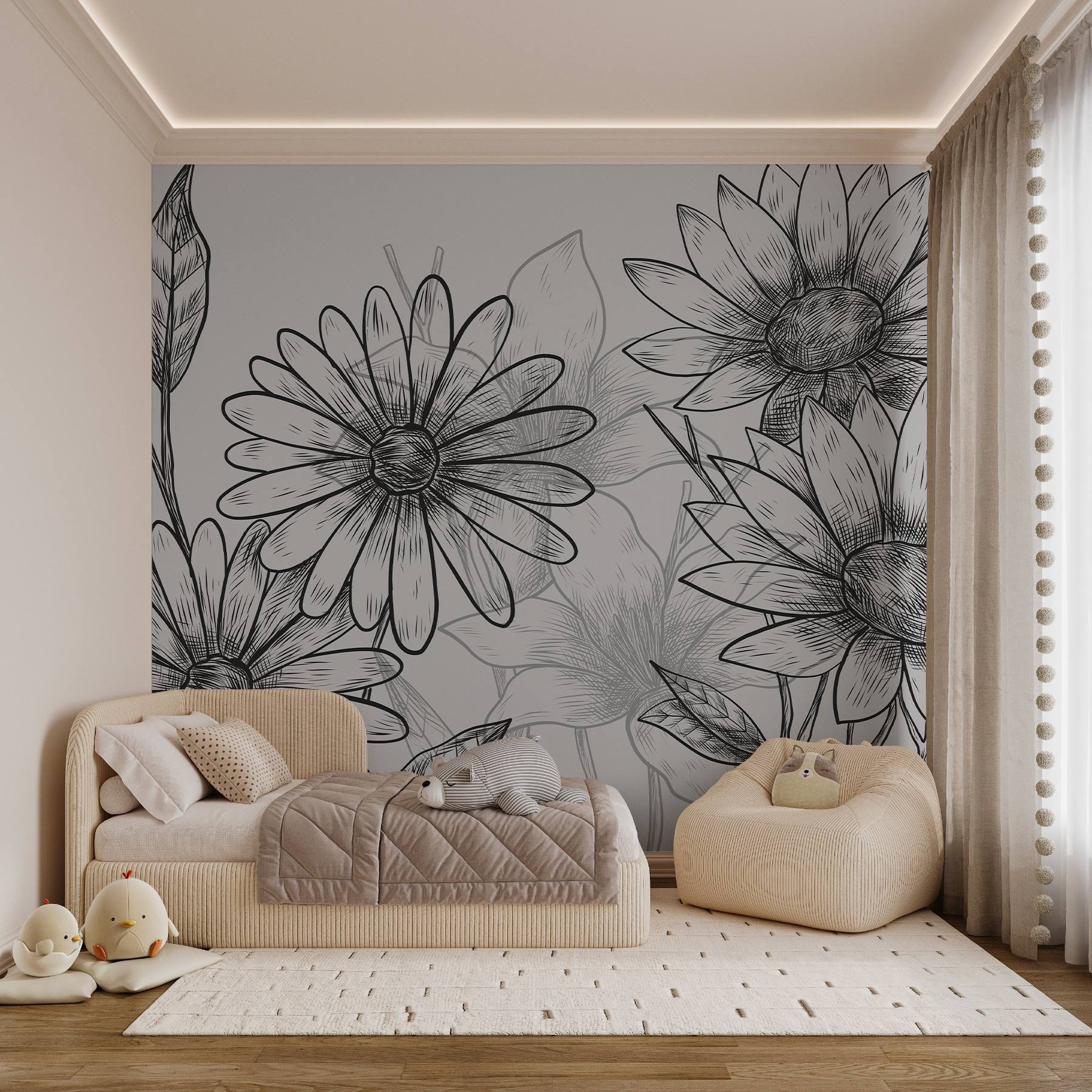 Bármelyik szobát virágzó paradicsommá varázsolhatja ezzel a lenyűgöző falfestménnyel, amely egy elbűvölő virág- és levélcsoportot ábrázol. Képzelje el, hogy minden nap ezekre a kedves virágokra ébred, minden egyes szirom tökéletesen megrajzolva. Olyan, mintha egy miniatűr kert lenne az otthonodban, az öntözőkanna nélkül!