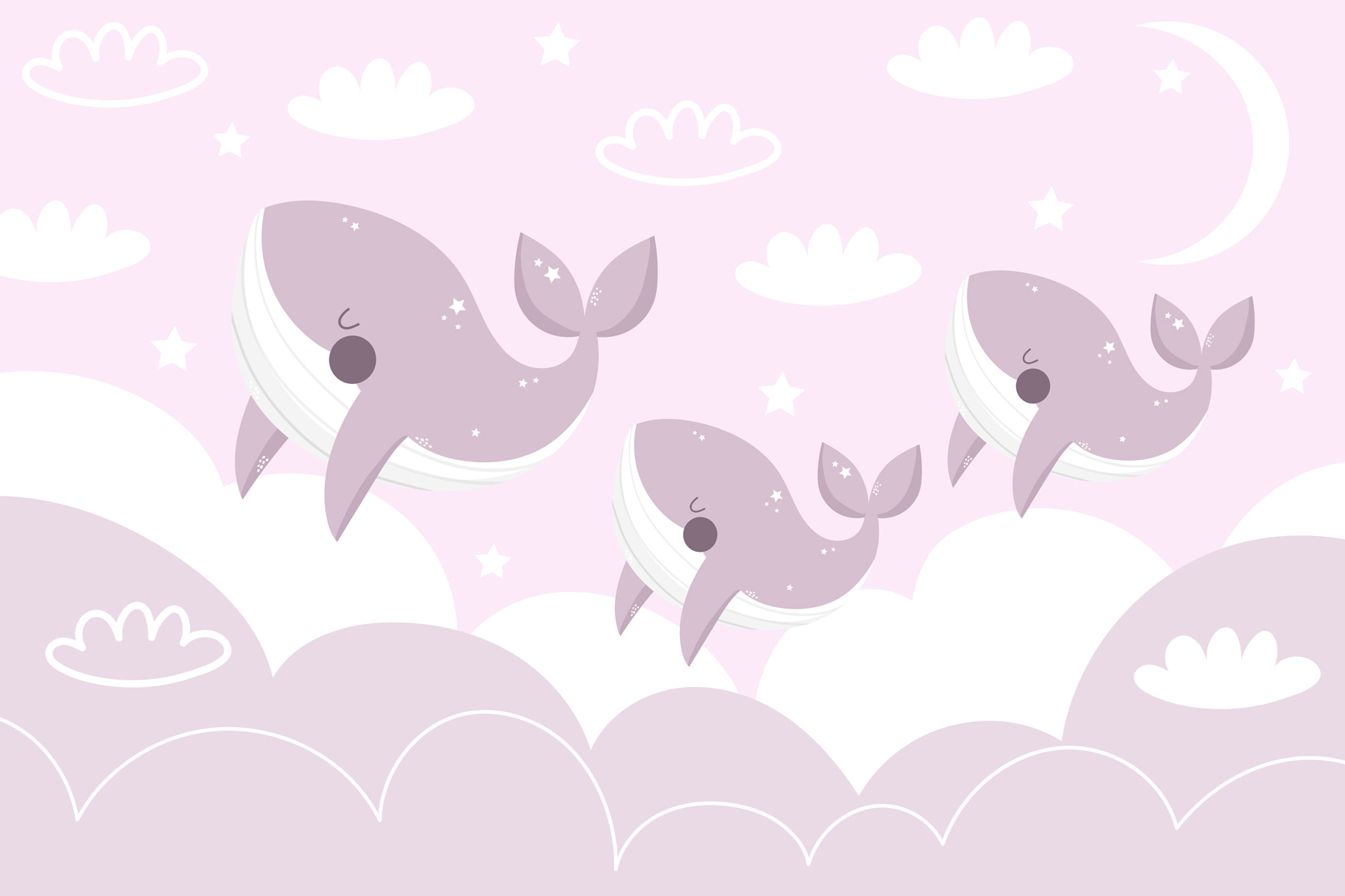 Képzelje el, hogy egy álmodozó égbolton keresztül sodródó bálnákkal díszített szobában érzi jól magát. Ez a játékos falfestmény, a “Bálnák csoportja az égen” nem csak gyerekeknek való – bármilyen helyiségbe hozza a szeszélyes bájt. A rózsaszín és a szürke lágy árnyalatai olyan hangulatot teremtenek, amely egyszerre megnyugtató és vidám, mintha vattacukorfelhőket nézegetnénk naplementekor. Képzelje el, ahogy a kicsik tágra nyílt szemmel és elvarázsolva néznek felfelé, és hagyják, hogy a képzeletük szárnyaljon vízi barátaikkal együtt. Ez a falfestmény szelíden emlékeztet arra, hogy álmodj nagyot, és fogadd el a gyermekkor varázsát – tökéletes gyerekszobákba, játszószobákba vagy bármely olyan zugba, ahol elkelne egy kis öröm.