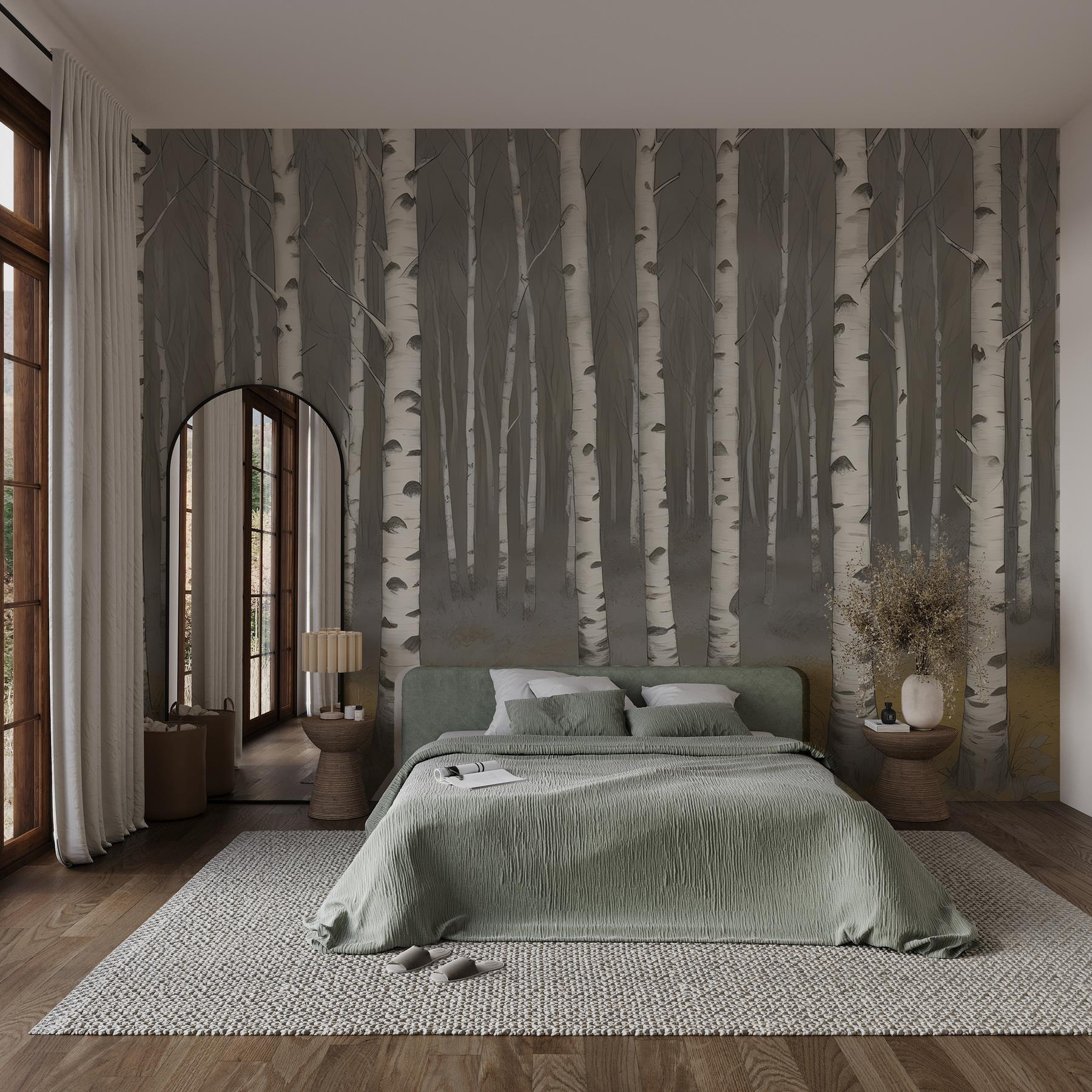 Bármelyik helyiséget nyugodt meneküléssé varázsolhatja ezzel a varázslatos nyírfás falfestménnyel. Olyan, mintha egy nyugodt erdőt hoznál az otthonodba. Képzelje el, ahogy egy hangulatos délutánon teát szürcsölget, puha fehér törzsek között, ahogy lágyan ringatóznak a képzeletbeli szellőben. A tompa színek nyugtató hangulatot árasztanak, tökéletes hálószobába vagy olvasósarokba. Ráadásul van valami varázslatos a természet egyszerűségében, nem igaz? Készüljön fel arra, hogy naponta érezze a békés erdei energiát – a bosszantó bogarak és sáros csizmák nélkül. Fogadja be a természet szépségét a beltérben, és nézze, ahogy a tér életre kel!