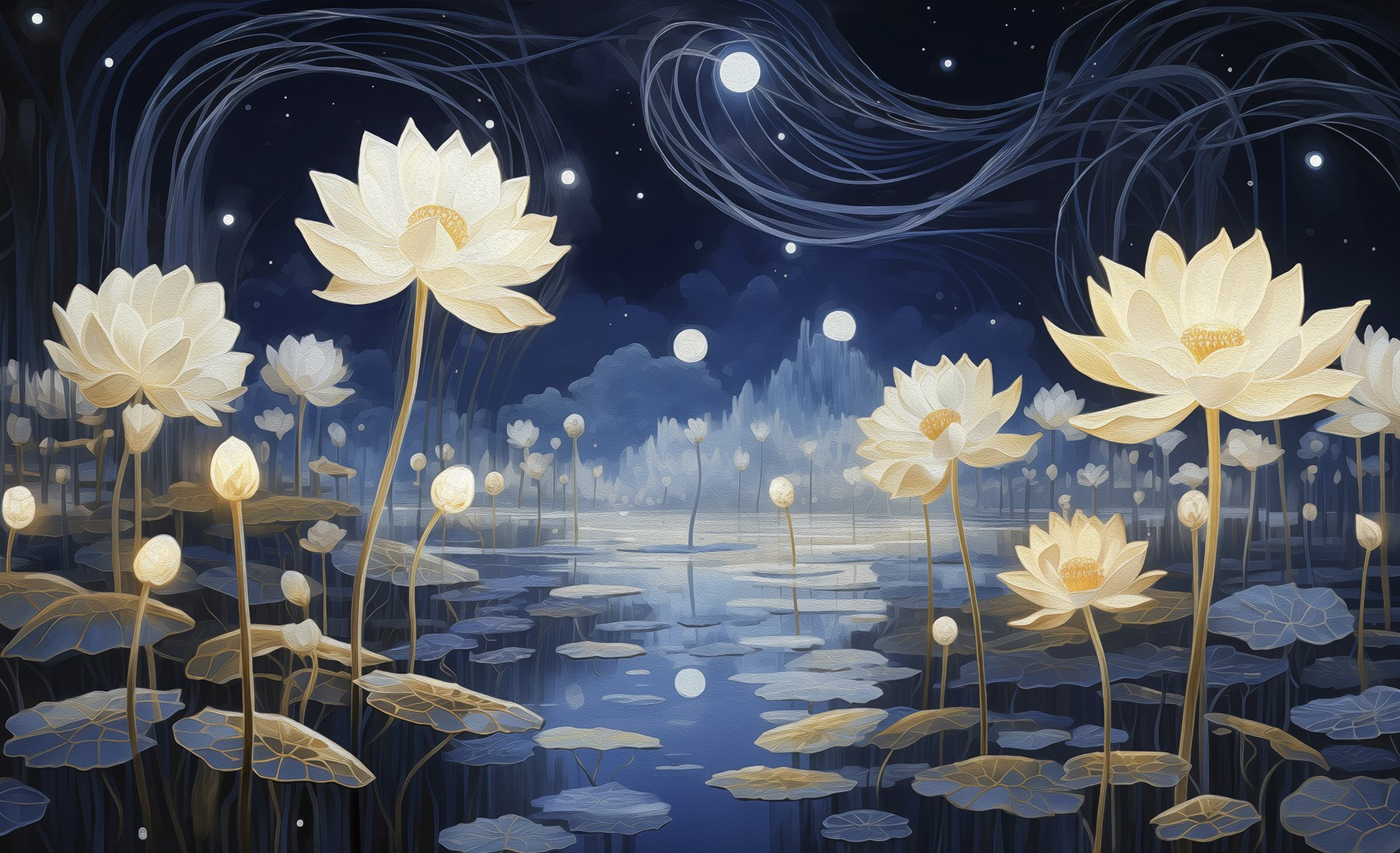 Alakítsa át terét ezzel a varázslatos falfestménnyel, ahol a virágok nyugodtan virágoznak egy álmodozó tóban. Képzelje el, hogy minden nap egy nyugodt menekülésbe lép – a finom szirmok és a csillogó víz olyan légkört teremtenek, amely egyszerre megnyugtató és felemelő. Tökéletes a nappaliba vagy egy hangulatos olvasósarokba, ez a dizájn megállásra és lélegzetvételre invitál, szinte mintha a virágok édes titkokat suttognának. A barátok biztosan megkérdezik majd, hogy hol találtál egy ilyen lenyűgöző darabot, és talán még arra is ihletet kapsz, hogy teapartit vagy hangulatos moziestet rendezz, csak hogy megmutasd. Egy kedves kiegészítő, amely bármilyen falat feldobhat bájjal és személyiséggel!