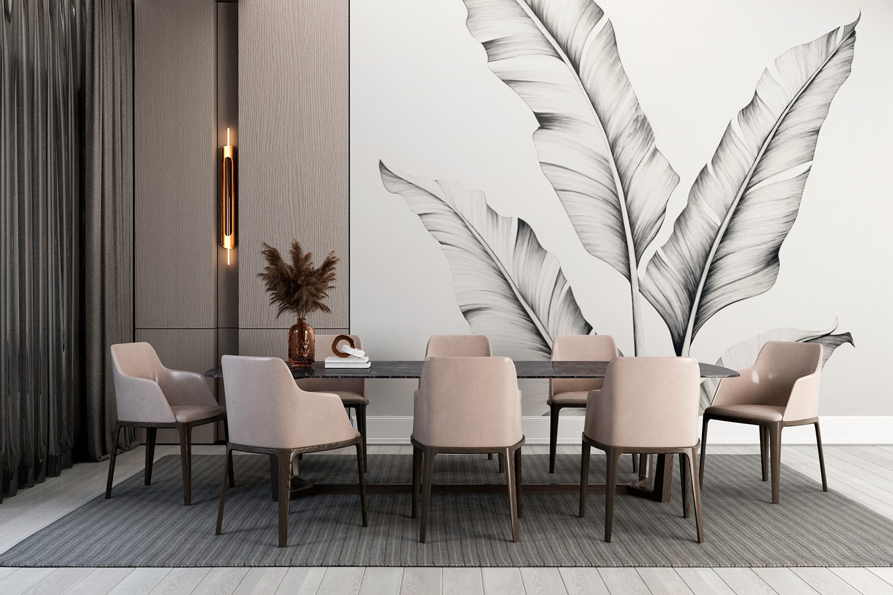 Alakítson át bármelyik szobát nyugodt meneküléssé ezzel a lenyűgöző növényrajzokat ábrázoló falfestménnyel. Képzelje el, hogy belép a helyiségébe, és úgy érzi, mintha egy trópusi paradicsomba csöppent volna – természetesen anélkül, hogy elhagyná a kanapéját. A levelek elegáns vonalai lágyan ringatóznak, a nyugalom és a természettel való kapcsolat érzetét keltve.