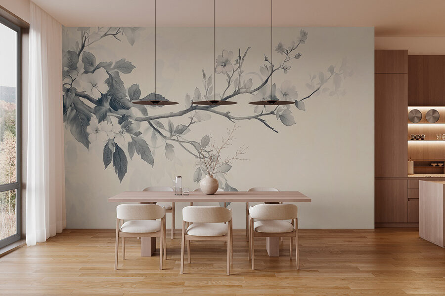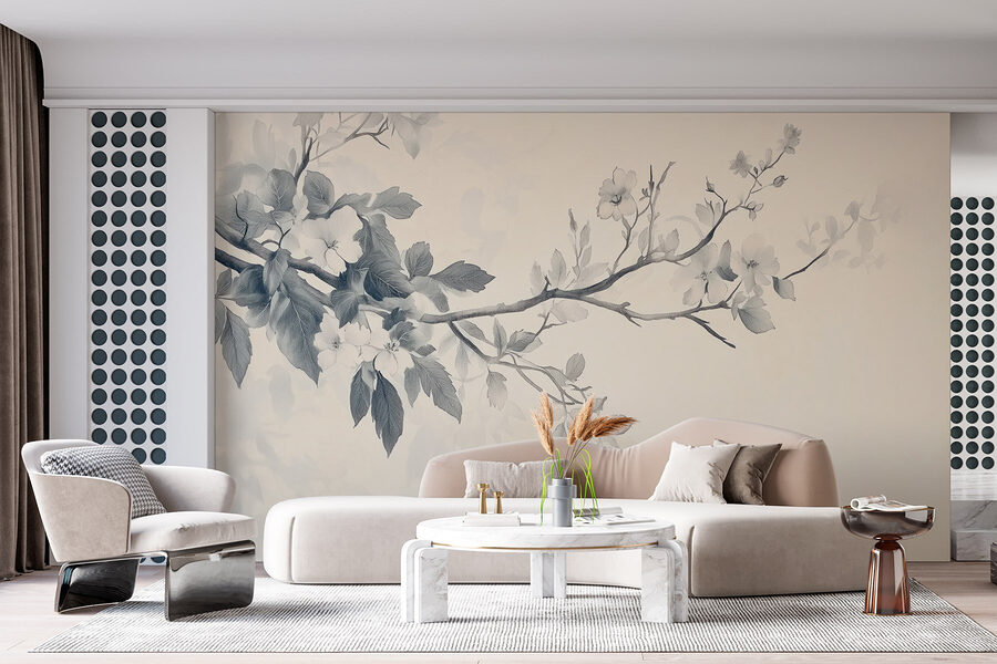 Alakítsa át terét ezzel a varázslatos falfestménnyel, az “ág virágokkal és levelekkel”. Képzeld el, hogy egy nyugodt japánkertben sétálsz a nappalidban – boldogságos, igaz? Finom, lágy virágok és bonyolult levelek lebegnek a falon, olyan nyugalmat árasztva, amely olyan frissítő, mint a reggeli szellő. Olyan, mint a természet műalkotása, amely könnyedén feldobja bármelyik unalmas sarkot. Tökéletes az álmodozáshoz vagy a hangulatos estékhez, melegségre és pihenésre hív. Minden pillantása felidézheti egy szép kerti séta emlékét, vagy azt, amikor a virágok csodálása közben elvesztette az időérzékét. Beszéljünk egy kis oázisról!