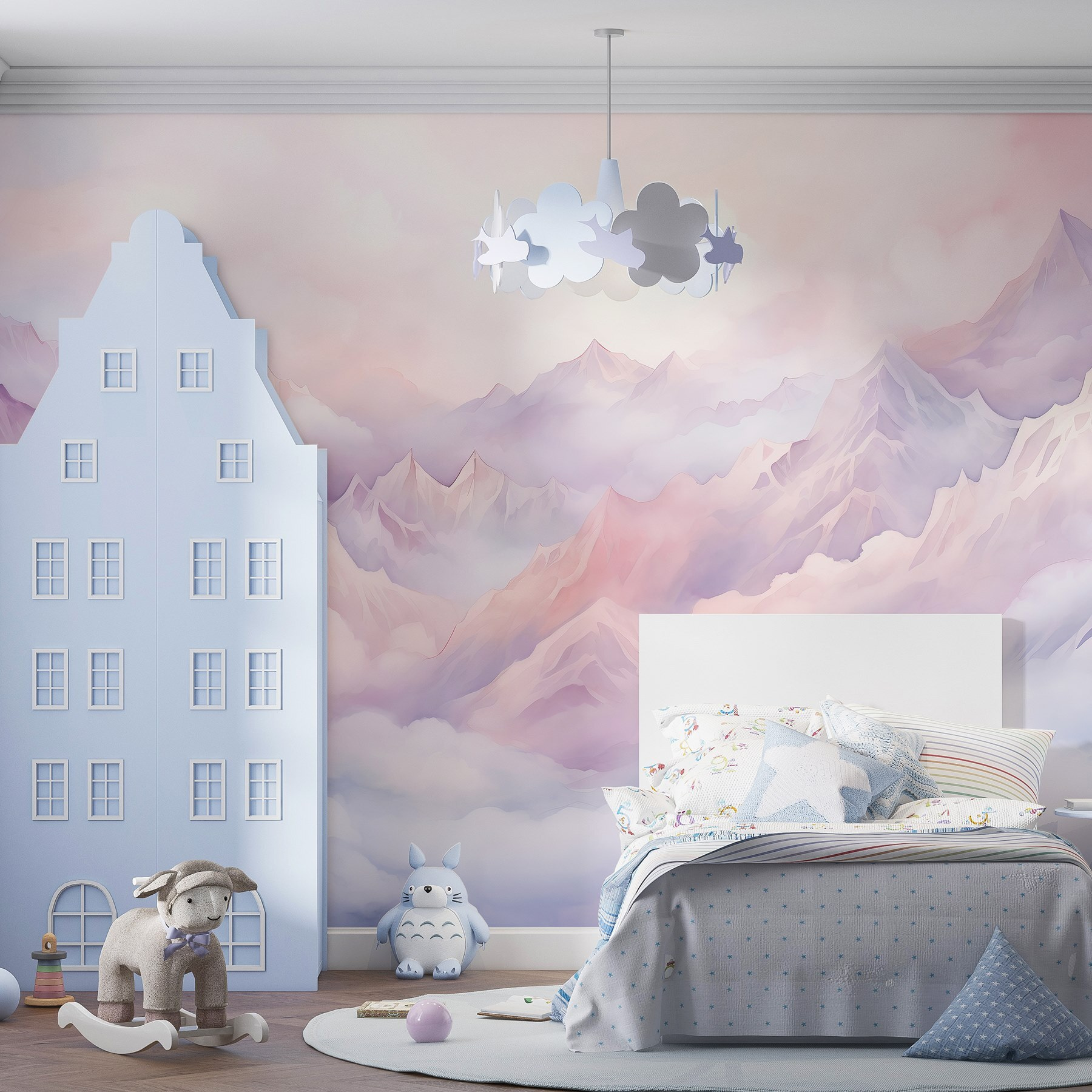Merüljön el egy álomszerű menekülésbe ezzel a lenyűgöző falfestménnyel, amely egy felhőkkel csókolózó hegyvonulatot ábrázol. Képzelje el, hogy lágy pasztellszínű hegycsúcsokra ébred, amelyek azt suttogják: “Menjünk kalandozni!” Az akvarell stílus szelíd, nyugtató hangulatot áraszt, amely tökéletes egy hangulatos olvasósarokba vagy egy nyugodt hálószobába. Olyan, mintha a természetet behoznád, anélkül, hogy valódi bogarakkal kellene megküzdened! A barátok talán azon kapják magukat, hogy gondolataiba merülve bámulnak, miközben te kávét kortyolgatva úgy érzed, mintha a világ tetején lennél. Emelje fel a terét könnyedén – nem szükséges túrabakancs!