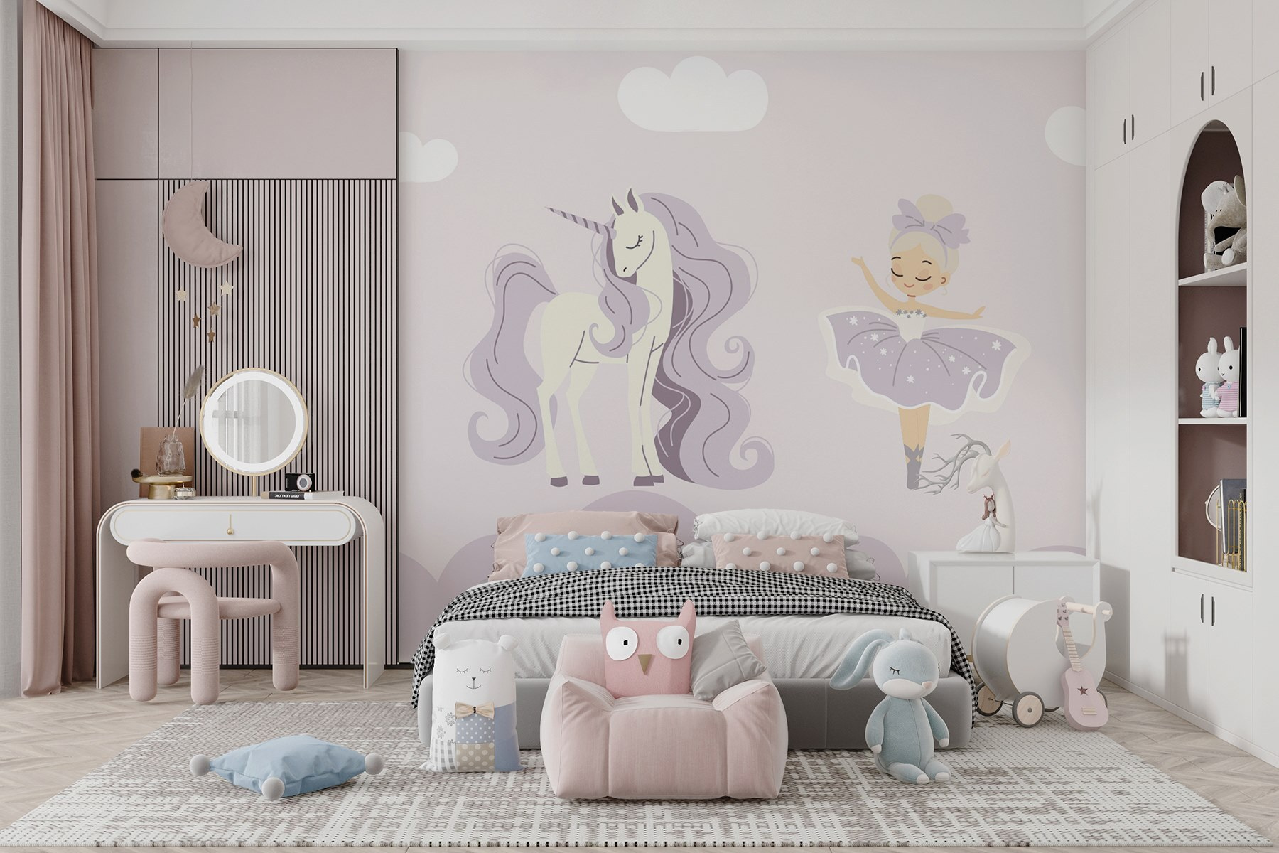 A “Falfestmények Egyszarvú és egy balerina” faliképekkel bármilyen teret szeszélyes csodavilággá varázsolhatsz. Képzeld el: egy bájos egyszarvú és egy kecses balerina táncol egy álomszép pasztellszínű égbolton. Olyan, mintha egy kis varázslat lenne a faladon! A gyerekek (és legyünk őszinték, a felnőttek is) elmerülhetnek a képzeletükben, és pörgésről és csillogásról álmodozhatnak. Ez a falfestmény tökéletes a játszószobába vagy a hálószobába, és még a legunalmasabb falat is mesebeli hangulatúvá varázsolja. Képzeld csak el a mosolyt, amikor a barátok átugranak hozzád – mindenki szereti a jó kis unikornisos meséket, nem igaz? Lágy, bájos és nagyon inspiráló – a kalandok és álmodozások tökéletes háttere!