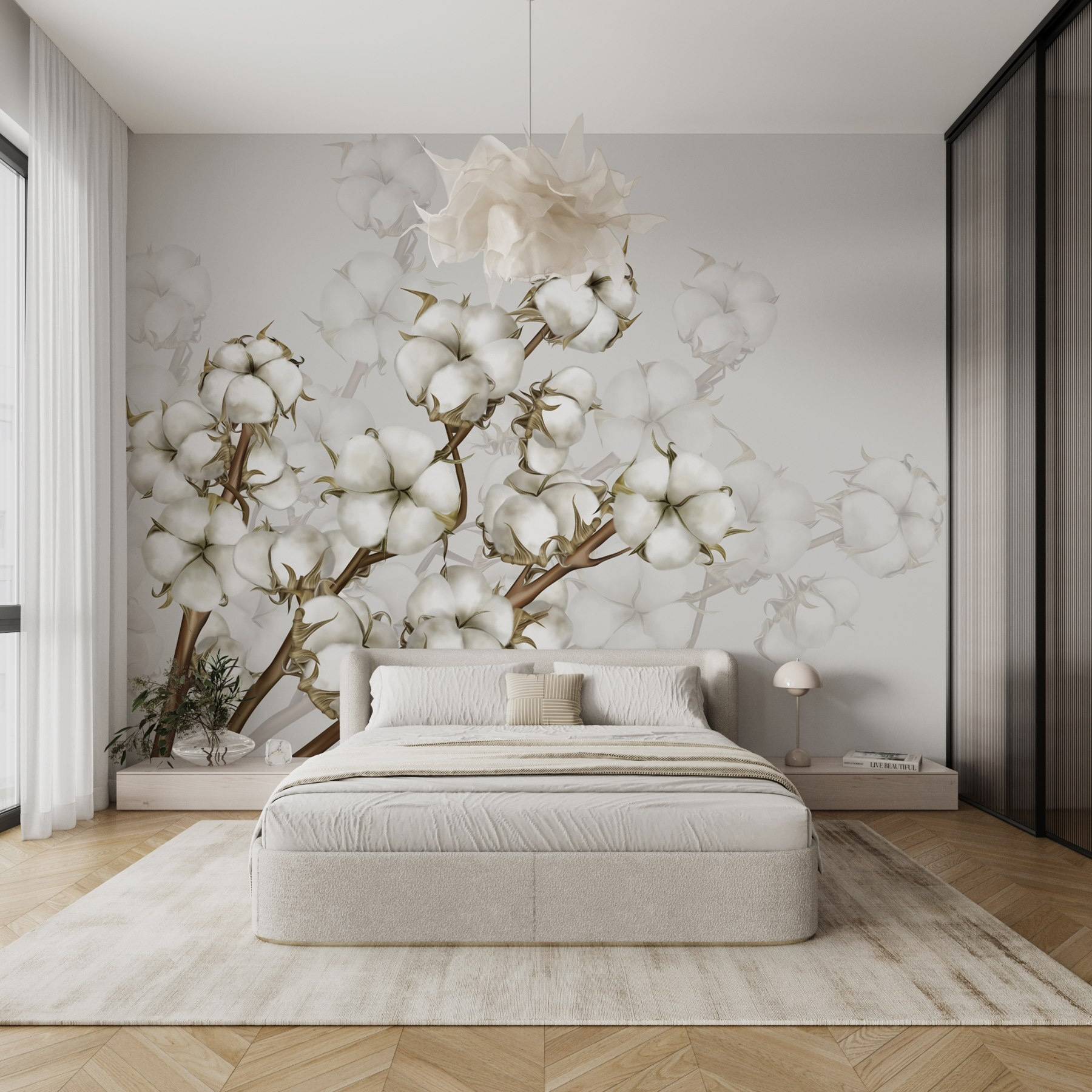 Alakítson át bármilyen teret ezzel a bájos falfestménnyel, amely a fehér virágok bájos szépségét mutatja be. Képzelje el, hogy egy olyan szobába lép be, amelyet mintha egy lágy tavaszi szellő csókolna meg, ahol a lágy szirmok szinte suttogva mesélnek a természet kegyelméről. Ezeknek a virágoknak az egyszerű eleganciája nyugodt hangulatot áraszt, amely tökéletes egy hangulatos olvasósarokba vagy egy elegáns nappaliba.