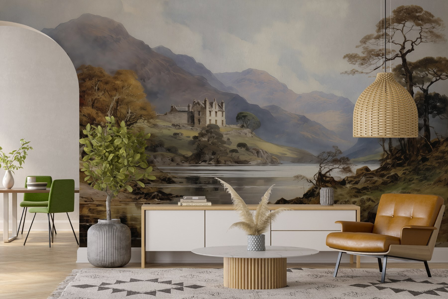 Bármelyik szobát hangulatos menedékké varázsolhatja ezzel a lenyűgöző akvarell falfestménnyel, amely egy dombon álló várat ábrázol, buja fák és fenséges hegyek között. Mintha minden alkalommal, amikor elhalad előtte, egy mesébe lépne be. Képzelje el: pihen a kanapén, teát kortyolgat, miközben a falai álomszerű tájképpel telnek meg. A lágy színek melegséget árasztanak anélkül, hogy túlterhelőek lennének, tökéletesek azokhoz a pillanatokhoz, amikor csak békés hangulatra van szükség. És hé, ki ne szeretne egy fenséges kastélyra néző kilátást utazási gondok nélkül? Csak egy kis varázslat, hogy felderítse a mindennapokat!