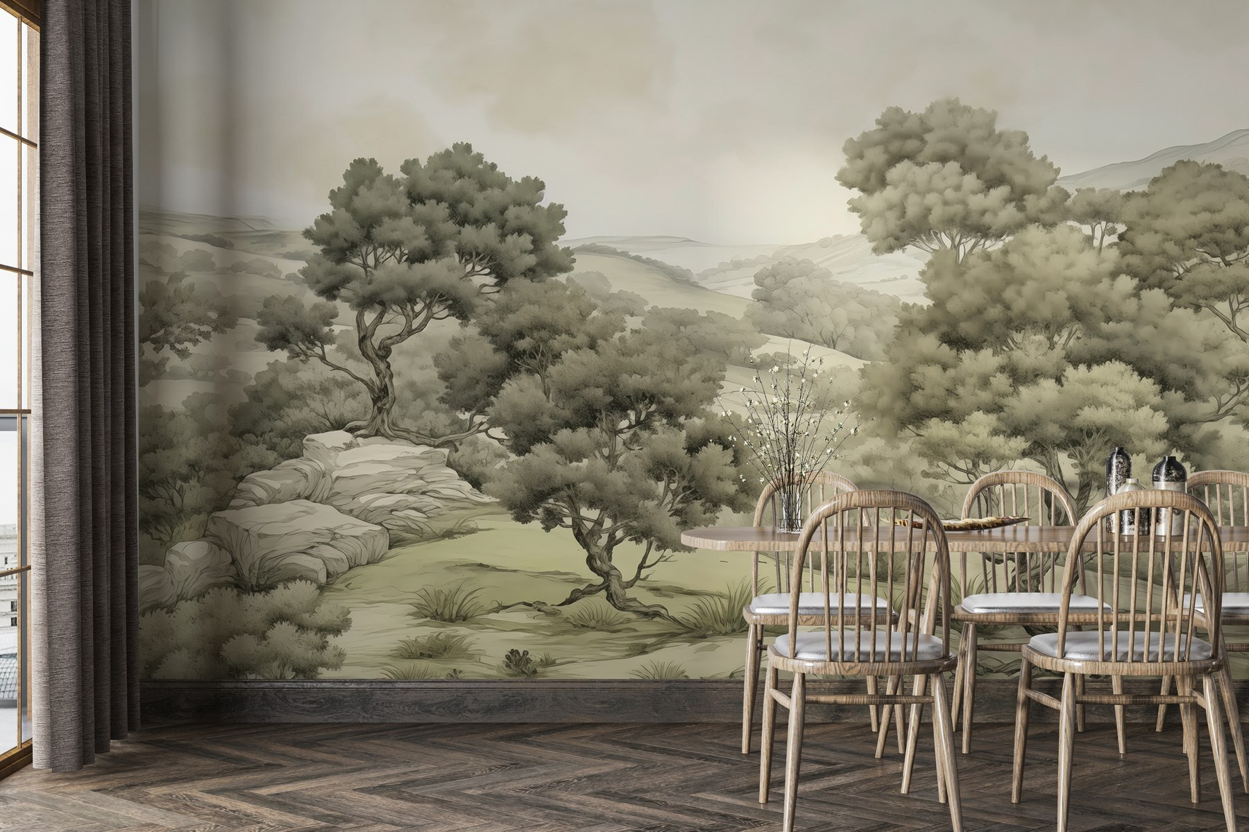 Alakítsd át otthonodat egy nyugodt menedékhellyé ezzel a lenyűgöző faliképpel, a „Fákkal és sziklákkal tarkított táj” cíművel. Képzeld el, hogy minden reggel úgy ébredsz, mintha egy békés erdőbe lépnél be – milyen frissítő! A lágy, tompított színek nyugodt hangulatot árasztanak, így tökéletesen illenek nappalikba vagy hangulatos zugokba. Mintha egy kis darabka természetet hoznál be a lakásodba, anélkül, hogy aggódnod kellene a bosszantó rovarok vagy az időjárás miatt, amelyek elrontanák a hangulatot.