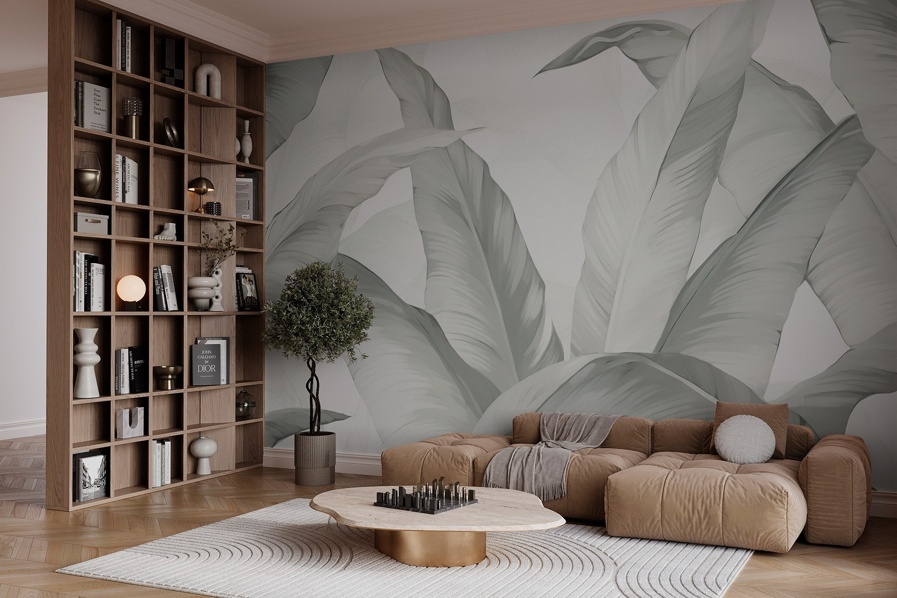 Transform any space into a serene sanctuary with the “Soft Green Leaves, Nature’s Elegance” mural. Imagine walking into your room and feeling like you’ve just stepped into a peaceful garden—soft, leafy wonders embracing you from the walls. The gentle greens and calming hues not only breathe life into your decor but also invite those sweet moments of relaxation. Picture sipping coffee while admiring the elegant foliage; it’s like nature is saying, “Hey, take a deep breath!” A perfect touch for cozy homes or creative spaces, this mural’s charm lies in its simplicity, letting your imagination wander. Who knew greenery could be so refreshing indoors?