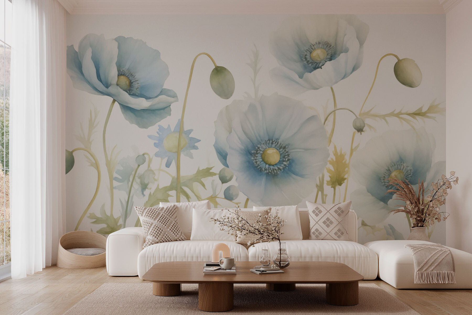 A „Finom virágok lágy pasztell árnyalatokban” falfestmény segítségével egy unalmas falat békés oázissá varázsolhat. Képzelje el, hogy belép egy szobába, ahol lágy akvarellvirágok táncolnak a falon, és nyugodt színeik édes semmiségeket suttognak a lelkének.