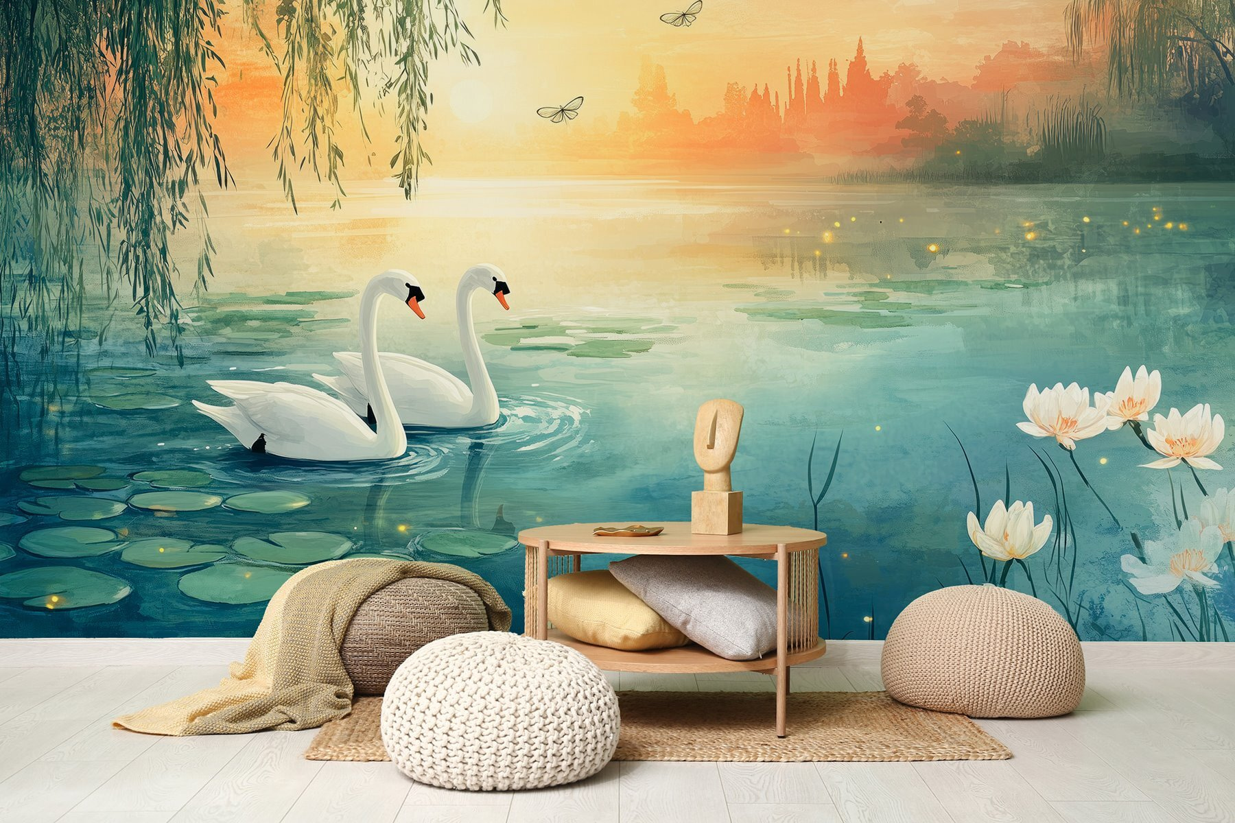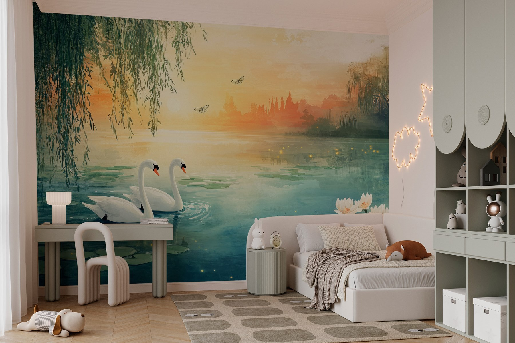Merüljön el a nyugalomban a „Két hattyú a tavon” falfestménnyel – olyan, mintha a természet ölelne át! Ez a motívum kecses hattyúkat ábrázol, akik egy csendes tavon siklanak, miközben a fák között átszűrődik a lágy napfény. Tökéletes választás, ha bármelyik szobát békés menedékké szeretné varázsolni. Képzelje el, ahogy reggeli kávéját kortyolgatja, miközben ez a békés jelenet veszi körül, vagy egy jó könyvvel kucorog, miközben a kellemes hangulat elrepíti messzire. A finom színek és a nyugodt hangulat eleganciát kölcsönöznek a helyiségnek, és minden egy kicsit különlegesebbé válik. Ráadásul azok a vízililiomok? Egyszerűen lenyűgözőek! Ez a falfestmény nem csak dekoráció, hanem felhívás arra, hogy álljunk meg, vegyünk egy mély levegőt, és értékeljük a kis pillanatokat. Gyerünk, hagyja, hogy falai a nyugalom és a szépség történeteit suttogják!