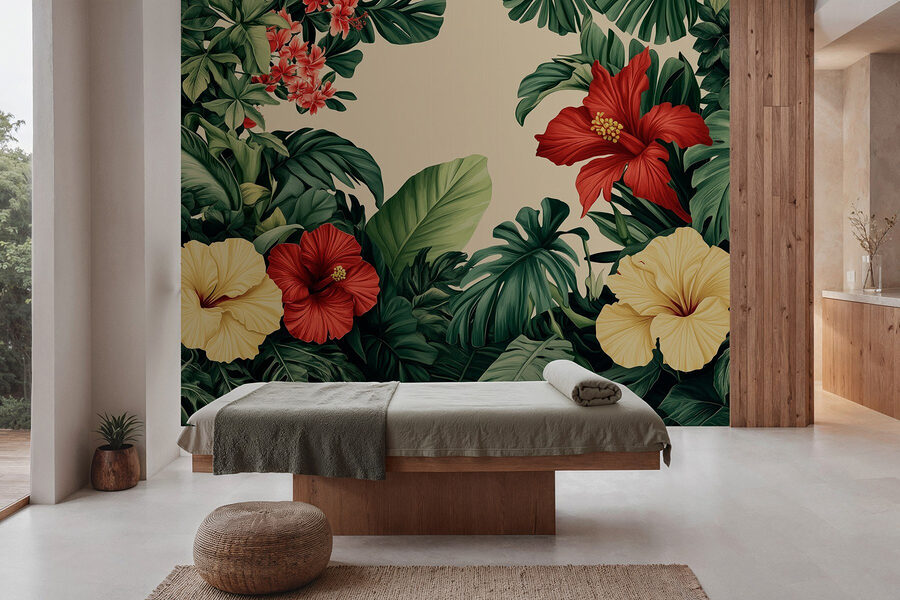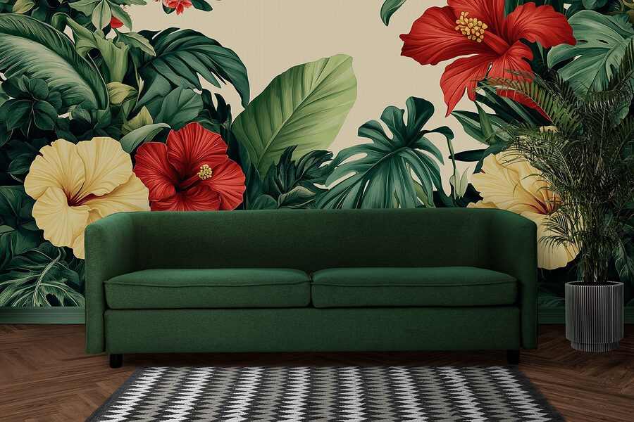 Bármelyik szobát trópusi menedékké varázsolhatja ezzel a lenyűgöző faliképpel, amelyen élénk virágok és buja levelek láthatók. Képzelje el, hogy belép a szobájába, és merész hibiszkuszvirágok és mélyzöld növények fogadják. Olyan, mintha otthon lenne egy mini vakáció! Ez a falikép nemcsak színt ad, hanem élénk hangulatot is, tökéletes a nappali felvidításához vagy egy kis természet behozásához egy hangulatos olvasósarokba. Képzelje el, ahogy egy italt kortyolgat, miközben élvezi ezt a botanikai szépséget – tiszta boldogság! Tökéletes azoknak, akik vágyakoznak a szabadban való tartózkodás varázsára, anélkül, hogy bármit is öntözniük kellene.