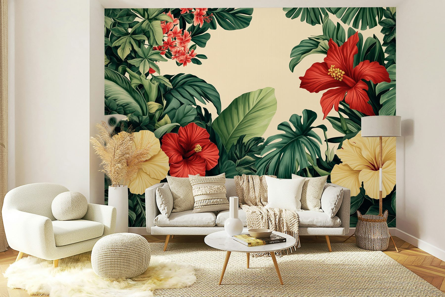 Bármelyik szobát trópusi menedékké varázsolhatja ezzel a lenyűgöző faliképpel, amelyen élénk virágok és buja levelek láthatók. Képzelje el, hogy belép a szobájába, és merész hibiszkuszvirágok és mélyzöld növények fogadják. Olyan, mintha otthon lenne egy mini vakáció! Ez a falikép nemcsak színt ad, hanem élénk hangulatot is, tökéletes a nappali felvidításához vagy egy kis természet behozásához egy hangulatos olvasósarokba. Képzelje el, ahogy egy italt kortyolgat, miközben élvezi ezt a botanikai szépséget – tiszta boldogság! Tökéletes azoknak, akik vágyakoznak a szabadban való tartózkodás varázsára, anélkül, hogy bármit is öntözniük kellene.