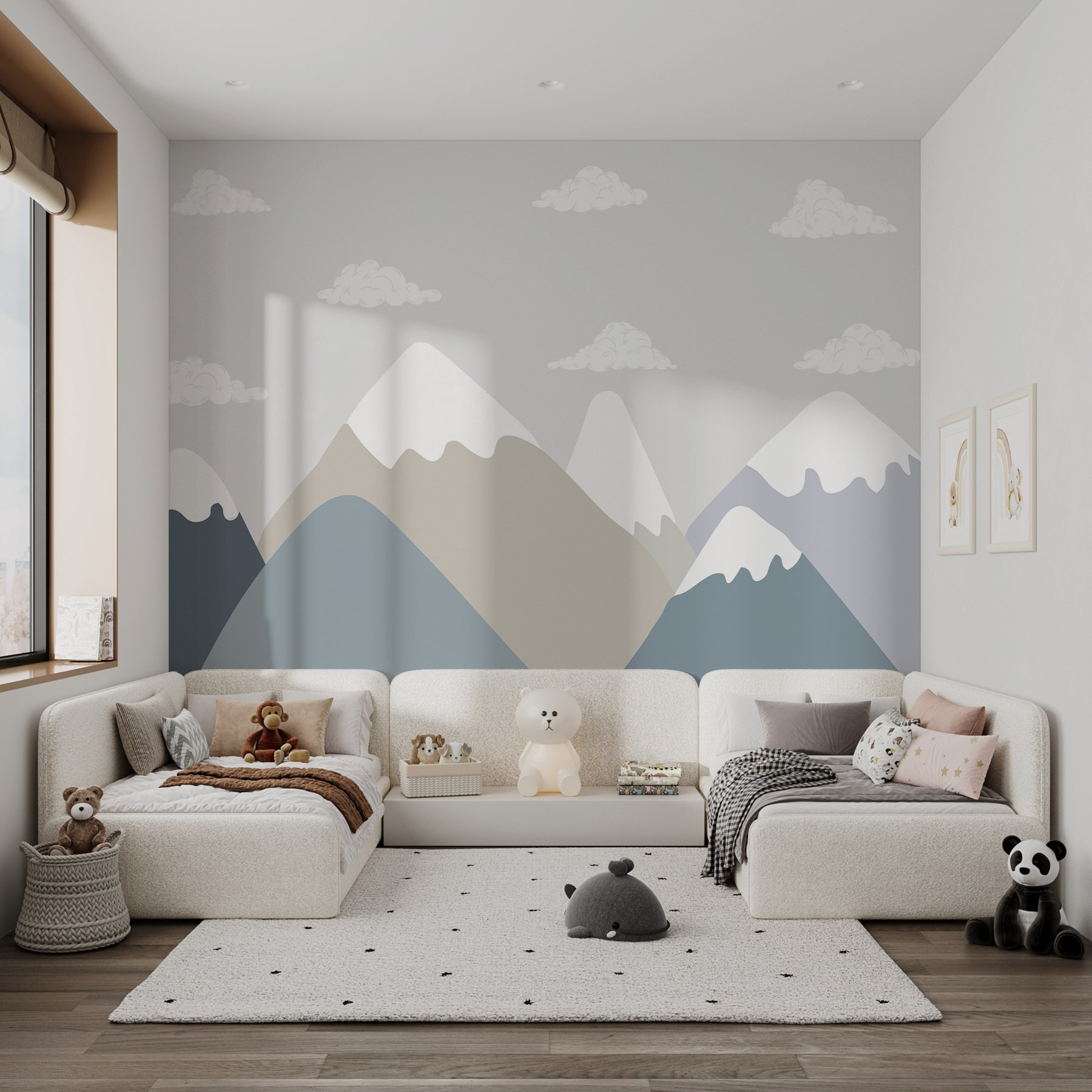 Alakítsa át terét ezzel a bájos falfestménnyel, amelyen békés hegyvonulatok és bolyhos felhők lebegnek. Képzelje el, hogy egy olyan szobába lép be, amely olyan, mintha egy friss levegőt szívna – egy hűvös menekülés a mindennapok elől. A kék és a bézs szelíd árnyalatai nyugalmat árasztanak, így tökéletes egy hangulatos olvasósarokba vagy egy nyugodt hálószobába. Képzelje el, ahogy egy jó könyvvel összegömbölyödve elveszik a természet szépségében anélkül, hogy elhagyná otthonát. Olyan, mintha egy saját szeleted lenne a természetből, a bogarak nélkül. Ideje, hogy a falak beszéljenek!