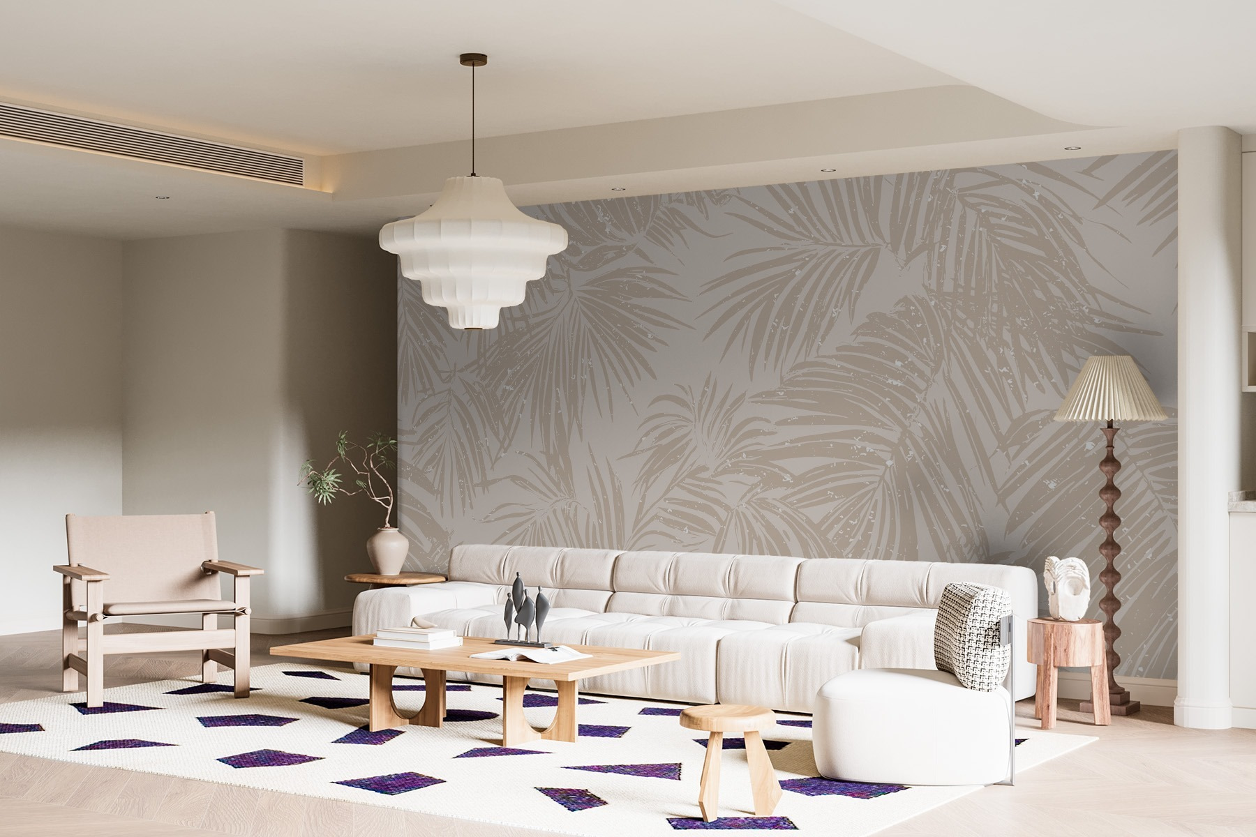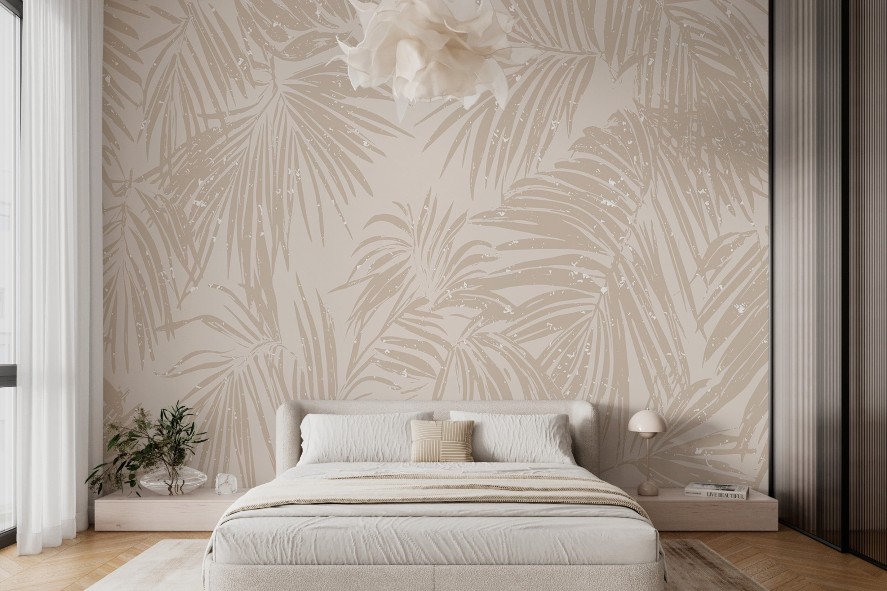 Képzelje el, hogy belép egy nyugodt oázisba, közvetlenül a nappalijában. Ez a falikép, lágy pálmaleveles mintákkal, puha, semleges háttérrel, nyugodt hangulatot és egy kis trópusi varázst áraszt. Képzelje el, hogy barátait fogadja, és a szokásos csevegés helyett a vendégek figyelmét a lenyűgöző falak vonzzák – „Hol szerezte ezt?” A tapéta elegancia és laza hangulat tökéletes keverékét kínálja, így remek hátteret biztosít hangulatos estékhez vagy napsütéses brunchokhoz. A fény pontosan úgy verődik vissza a levelekről, hogy békés hangulatot teremt. Olyan, mintha otthon lenne egy mini-vakáció, repülőjegyek és naptej nélkül! Tökéletes a természet szerelmeseinek vagy bárkinek, aki el akar menekülni a mindennapi rutinból anélkül, hogy ténylegesen elutazna. Bízzon benne, hogy ez a tapéta olyan módon emeli a tér hangulatát, hogy mindenki egy kicsit nyugodtabbnak érzi magát.