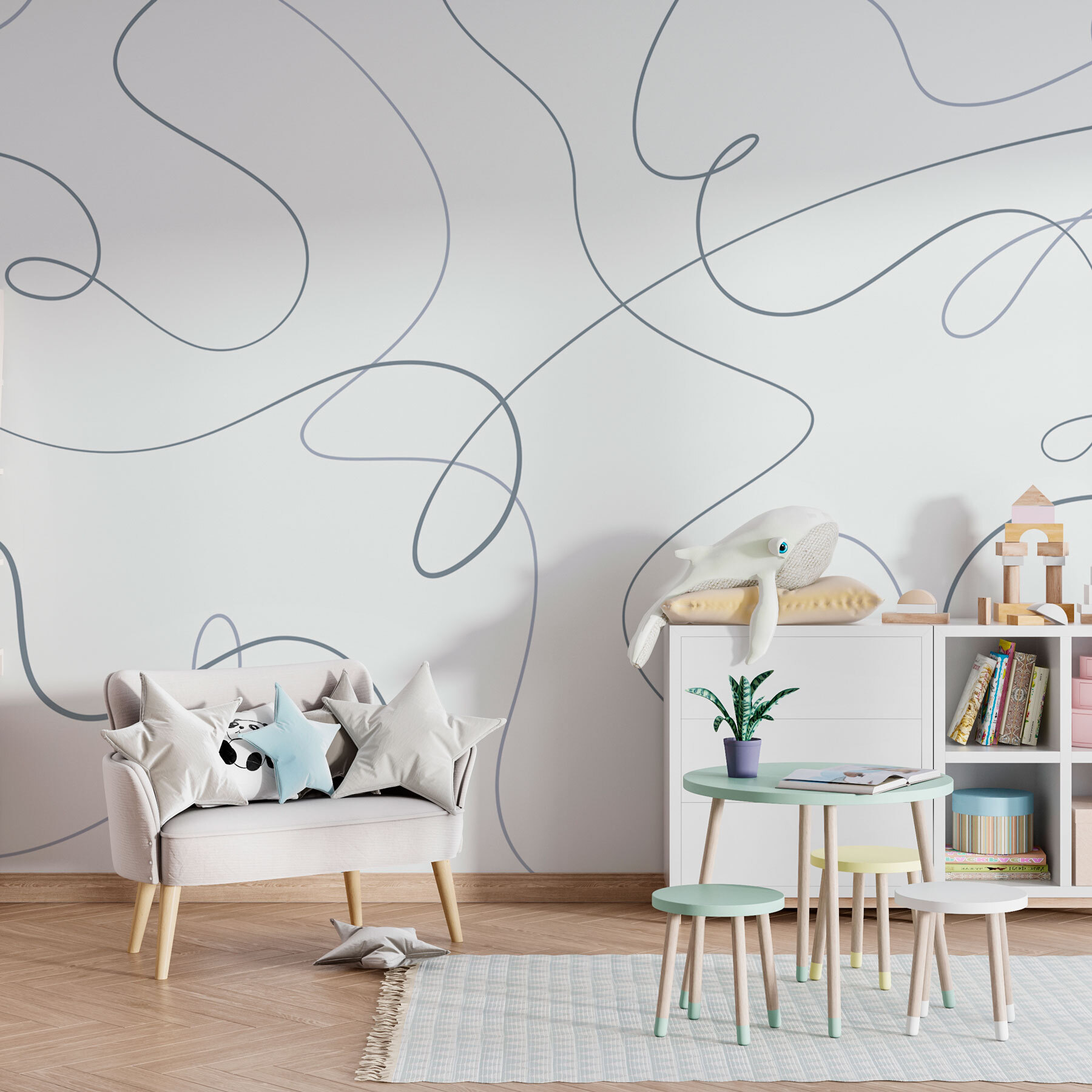 Képzelje el, hogy belép egy szobába, amely friss levegővel tölti meg. Ez a varázsa ennek a falfestménynek – „Falfestmények fehér háttérrel és kék vonalakkal”. Olyan, mint egy játékos, kavargó vonalakból álló tánc, amely könnyedén felvidítja bármelyik teret. Tökéletes azoknak a napoknak, amikor az élet kissé túl komolynak tűnik, ez a dizájn szeszélyes kanyarokkal és fordulatokkal ad egy kis humoros hangulatot. Legyen szó egy hangulatos olvasósarokról, egy élénk konyháról vagy az inspirációt igénylő otthoni irodáról, ez a falfestmény szabadjára engedi a fantáziát. Képzelje el, ahogy hátradől, kávét kortyolgat, és hagyja, hogy gondolatai a vonalak mentén kalandozzanak – komolyan, ez akár egy-két álmodozást is kiválthat. A könnyedség és a kreativitás a lényeg, így falai nem csak háttérként szolgálnak, hanem az öröm vászonaként is.