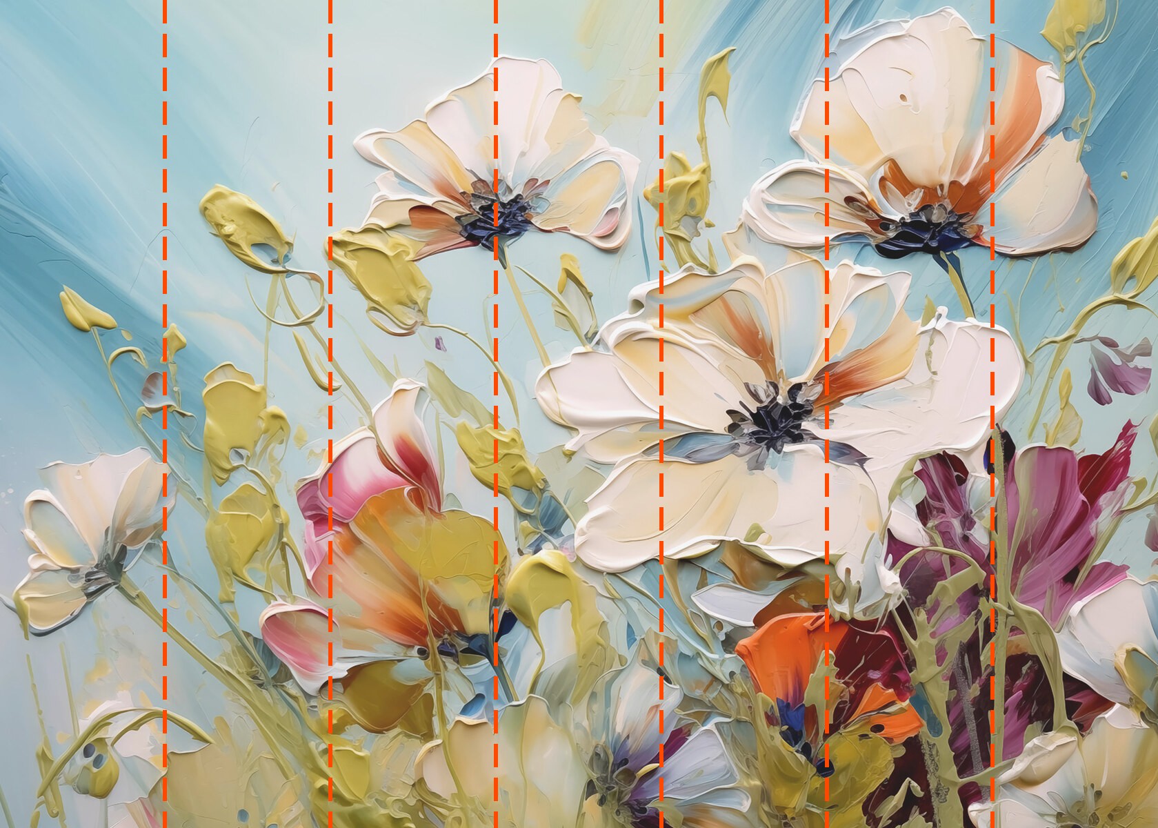 A tapétát a megrendeléskor megadott méretek szerint készítik el. A vásznat kényelmes, legfeljebb 50 cm széles szakaszokra osztjuk.