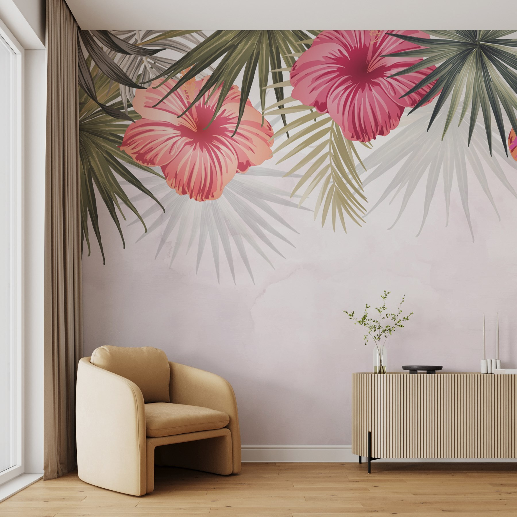Bármelyik szobát trópusi paradicsommá varázsolhatja ezzel a lenyűgöző faliképpel, amelyen rózsaszín virágok keverednek buja zöld levelekkel. Olyan érzés, mintha egy kis darabka természet kerülne az otthonába, tökéletes megoldás egy unalmas tér felvidítására. Képzelje el, hogy reggeli kávéját ezeknek az élénk virágoknak a közepette issza – talán még álmodozásra is inspirálja! A színek lágy háttér előtt kiemelkednek, így a falikép figyelemfelkeltő, de nem tolakodó. Persze, a növényeknek öntözésre van szükségük, de ez a szépség alig igényel gondozást! Tökéletes azok számára, akik egy kis természeti hangulatot szeretnének, anélkül, hogy a növények gondozásával kellene foglalkozniuk. Szóval, ne habozzon, engedje virágozni a falait!