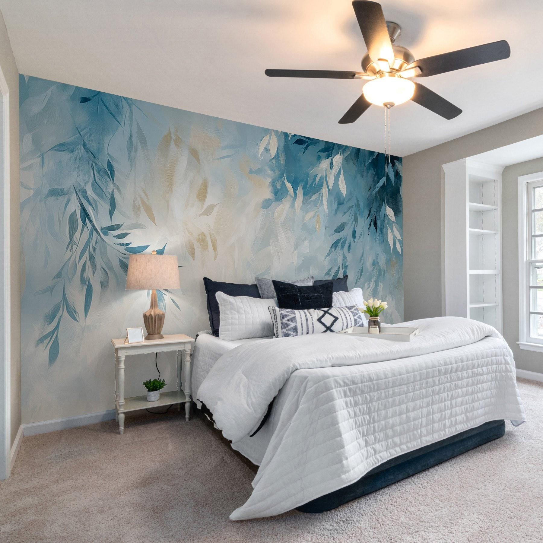 Egy tér átalakítása olyan egyszerű lehet, mint ennek a kedves falfestménynek a felakasztása, amely egy nyugtató kék-fehér hátteret ábrázol, finom levelekkel díszítve. Olyan, mint egy kis friss levegő a nappaliban vagy a hálószobában. Képzelje el, ahogy kávét kortyolgat, miközben a napfény átszűrődik, gyengéd árnyékokat vetve és táncra késztetve a leveleket. Tökéletes a nyugodt hangulat megteremtéséhez, pihenésre hív, és talán még a természetről való ábrándozásra is inspirál. Van egy üres fala? Ez a falfestmény eleganciával és egy csipetnyi szeszélyességgel tölti meg, és bármilyen unalmas teret hangulatos menedékhellyé varázsol. Ki gondolta volna, hogy a dekoráció ilyen üdítő lehet?