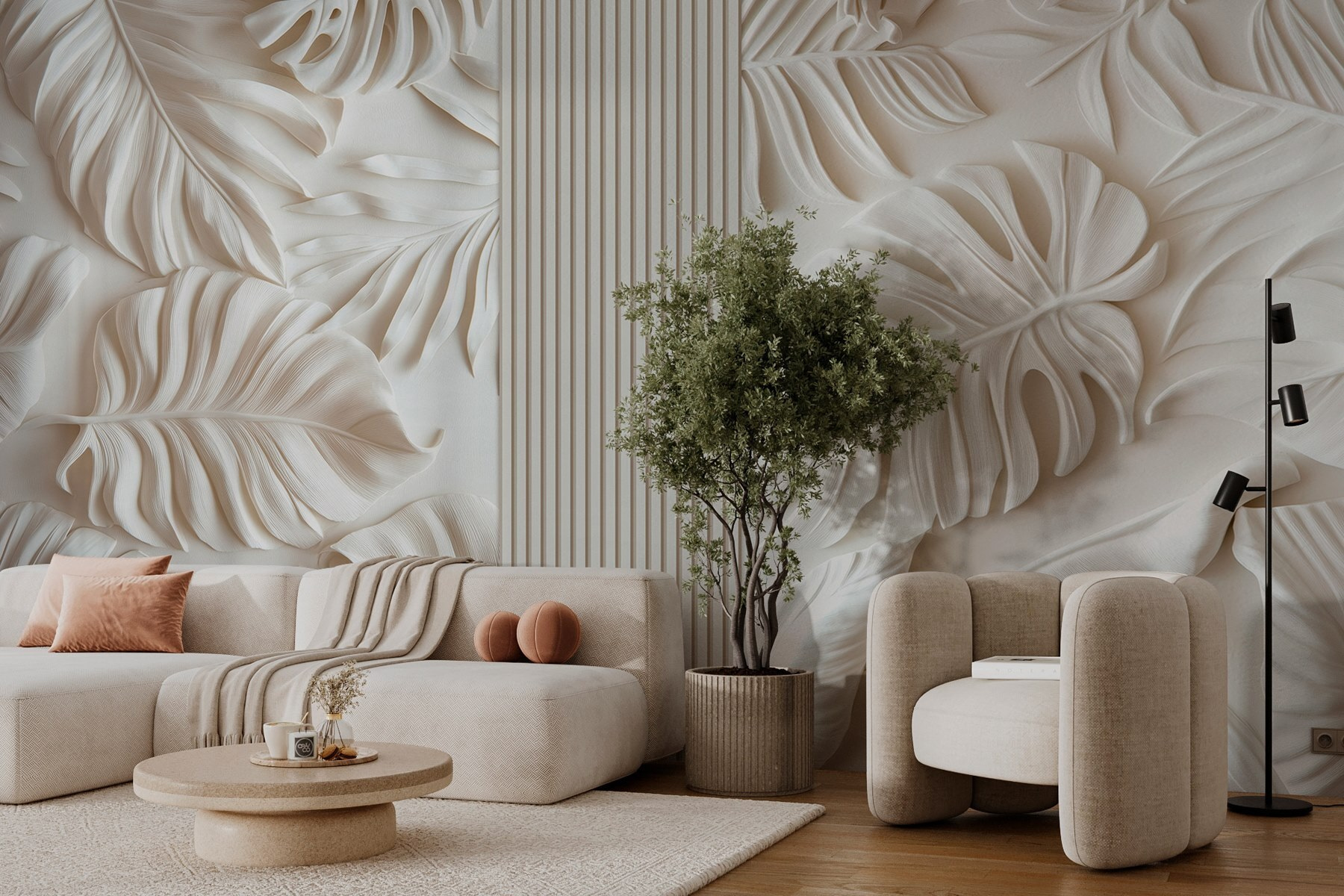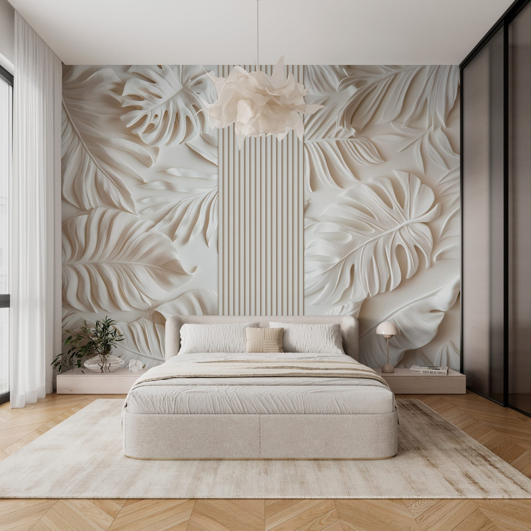Alakítson át bármilyen szobát nyugodt oázissá ezzel a lenyűgöző falfestménnyel, amely buja leveleket ábrázol fehér háttér előtt. Képzelje el, hogy egy trópusi paradicsomba lép, valahányszor belép a helyiségbe. A levelek bonyolult részletei a mélység érzetét keltik, mintha csak kinyújtanák a kezüket, hogy üdvözöljék Önt. A természetes fénnyel olyan jól párosul, hogy a szobája légiesnek és világosnak tűnik, mintha egy ablakot nyitott volna ki egy buja kertre. Tökéletes a hangulatos olvasósarokba vagy akár egy elegáns bejáratba – ez a falfestmény a természet egy csipetnyi hangulatát varázsolja a belső térbe. Ráadásul ki ne szeretné a zöldet? Olyan, mintha egy darab paradicsomot tartanál otthonodban.