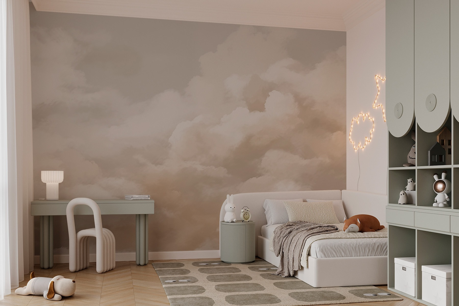 Képzelje el, hogy belép egy szobába, amely olyan, mintha az ég gyengéden átölelné – ez a „Felhős ég néhány felhővel” falikép pontosan ezt teszi! Puha, pasztell színeivel és bolyhos felhőivel olyan, mintha egy nyugodt, álomszerű napot hozna be a szobába. Tökéletes olyan helyiségekbe, ahol a pihenés a legfontosabb, például egy hangulatos olvasósarokba vagy egy nyugodt hálószobába. Képzelje el, ahogy teát kortyolgat, takaróba burkolózva, és a mennyezet helyett ezt az eget bámulja. És a legjobb rész? Csak le kell húzni és felragasztani! Tehát, ha holnap nem lesz kedve a felhőkhöz, ne aggódjon. Csak úgy változtassa meg, ahogy meggondolja magát!