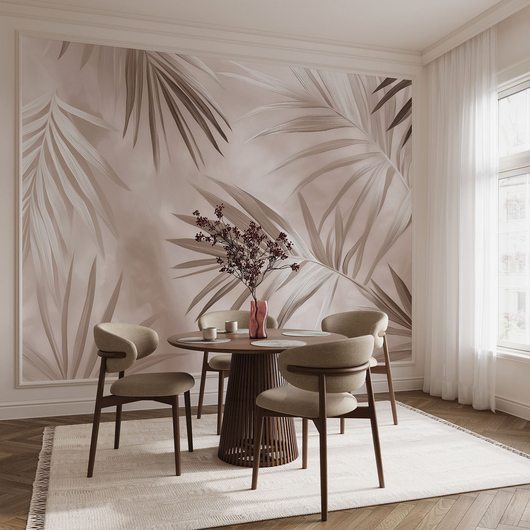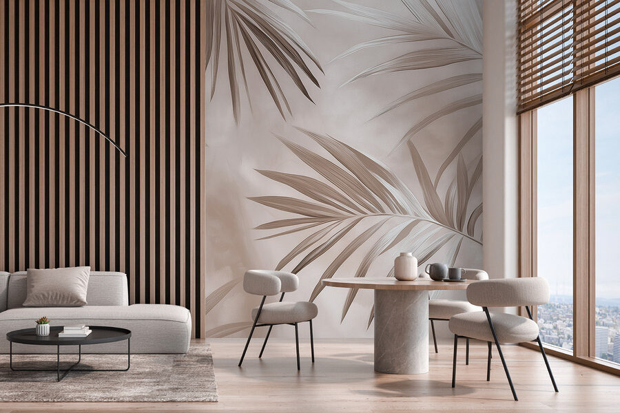 Képzelje el, hogy minden alkalommal, amikor belép a térbe, egy hangulatos trópusi menedékhelyre lép. Ez a falfestmény, amely kecses leveleket ábrázol lágy háttéren, ezt a hangulatot hozza el otthonába. Gondoljon a természet szelíd suttogására egy kis nyugalommal. Tökéletes, hogy a reggeli kávéját kortyolgatva a napsütötte vakációról álmodozzon. A barátok talán megállnak, és megkérdezik: “Most jöttél haza egy kiruccanásról?”. Ön pedig csak mosolyogni fog, tudván, hogy a kis oázis a háta mögött van. Akár a nappaliba, akár a hálószobába, vagy akár abba a részbe, amellyel még nem tudod, hogy mit kezdj, ez a falfestmény hűvös, frissítő hangulatot kölcsönöz. Ráadásul beszélgetésindító – mert ki ne szeretne pálmalevelekről beszélgetni?