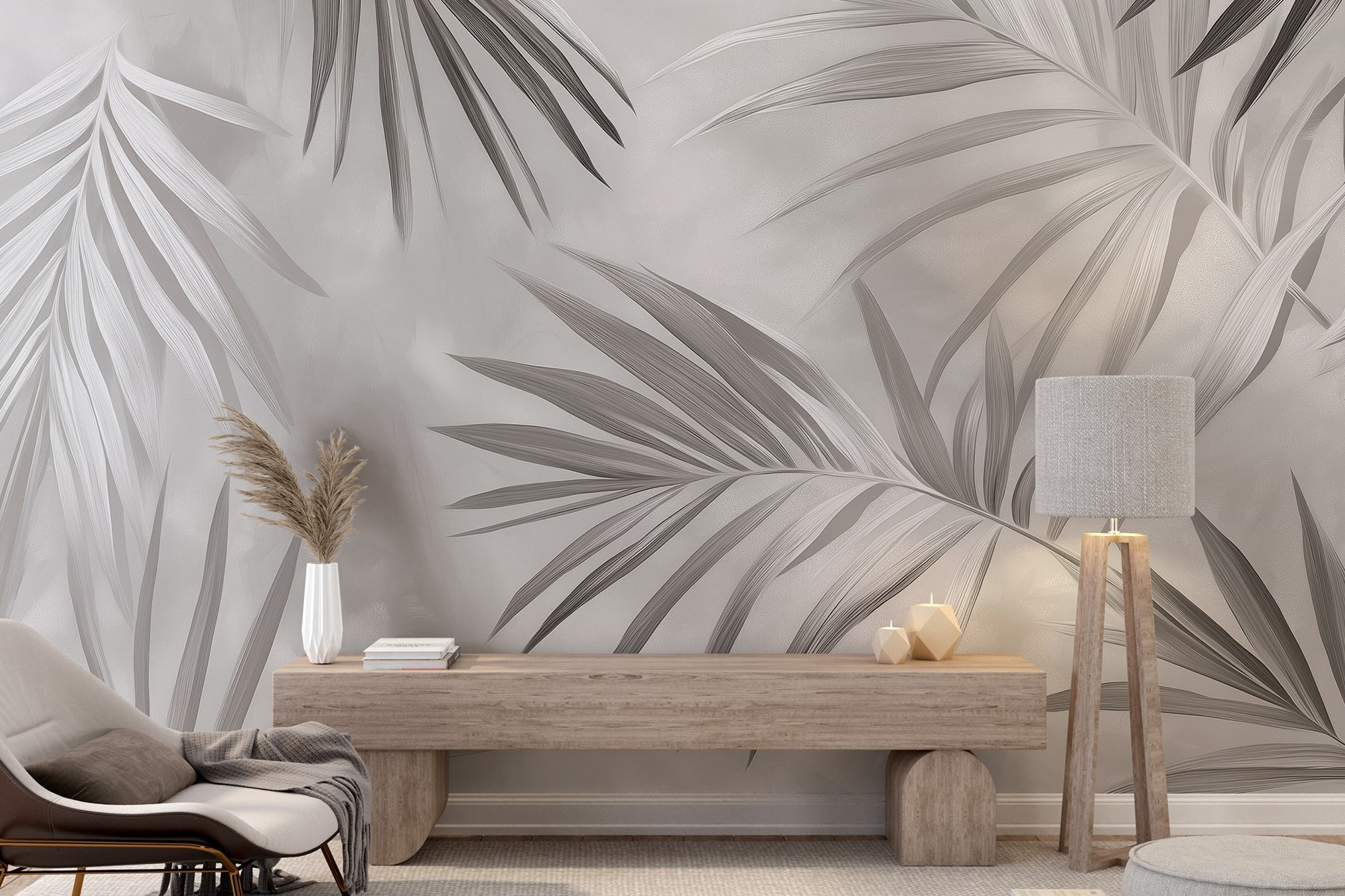Bármelyik falat nyugodt menedékké varázsolhatja ezzel a gyönyörűen puha, monokróm leveles falfestménnyel. Képzelje el, hogy minden alkalommal, amikor a falra pillant, egy békés ligetbe lép be. A levelek lágy mozgása, melyeket megnyugtató szürke árnyalatok borítanak, olyan nyugodt érzést kelt, amely tökéletesen illik a pihenésre szánt terekhez – gondoljon csak a hangulatos nappalikra vagy a nyugodt hálószobákra. Mintha egy darabka természetet hozna be a lakásába, csak a rovarok nélkül! Ráadásul a finom árnyalatok miatt könnyen kombinálható bármilyen stílusú berendezéssel. A barátai talán azt is gondolják majd, hogy belsőépítészt bérelt fel – pszt, ez a kis titka marad!