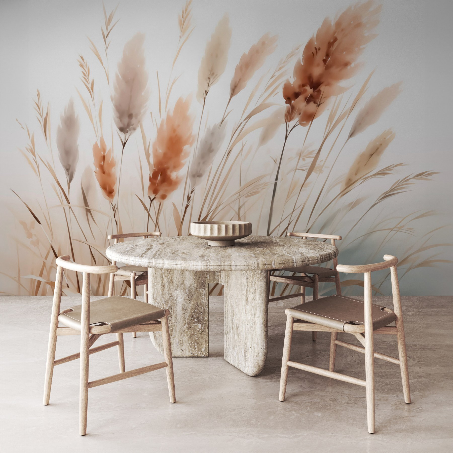 Hozzon egy kis nyugodt hangulatot a térbe ezzel a falfestménnyel: “A természet suttogása lágy árnyalatokban”. Képzelje el a füvek lágy ringatózását, tompa tónusokkal festve, amelyek nyugodt reggelekről és lágy szellőkről suttognak. Olyan, mintha egy csendes kert lenne az otthonodban, egy megnyugtató visszavonulás a kinti rohanó világtól. Képzelje el, hogy kávét kortyolgatva, a meleg fényben sütkérezve úgy érzi, mintha egy békés természeti jelenetbe lépett volna. Tökéletes egy hangulatos zugba vagy egy olyan falra, amely egy kis szeretetre szorul – ez a falfestmény nyugalmat és vidámságot sugároz, és minden pillantást egy mini meneküléssé tesz.