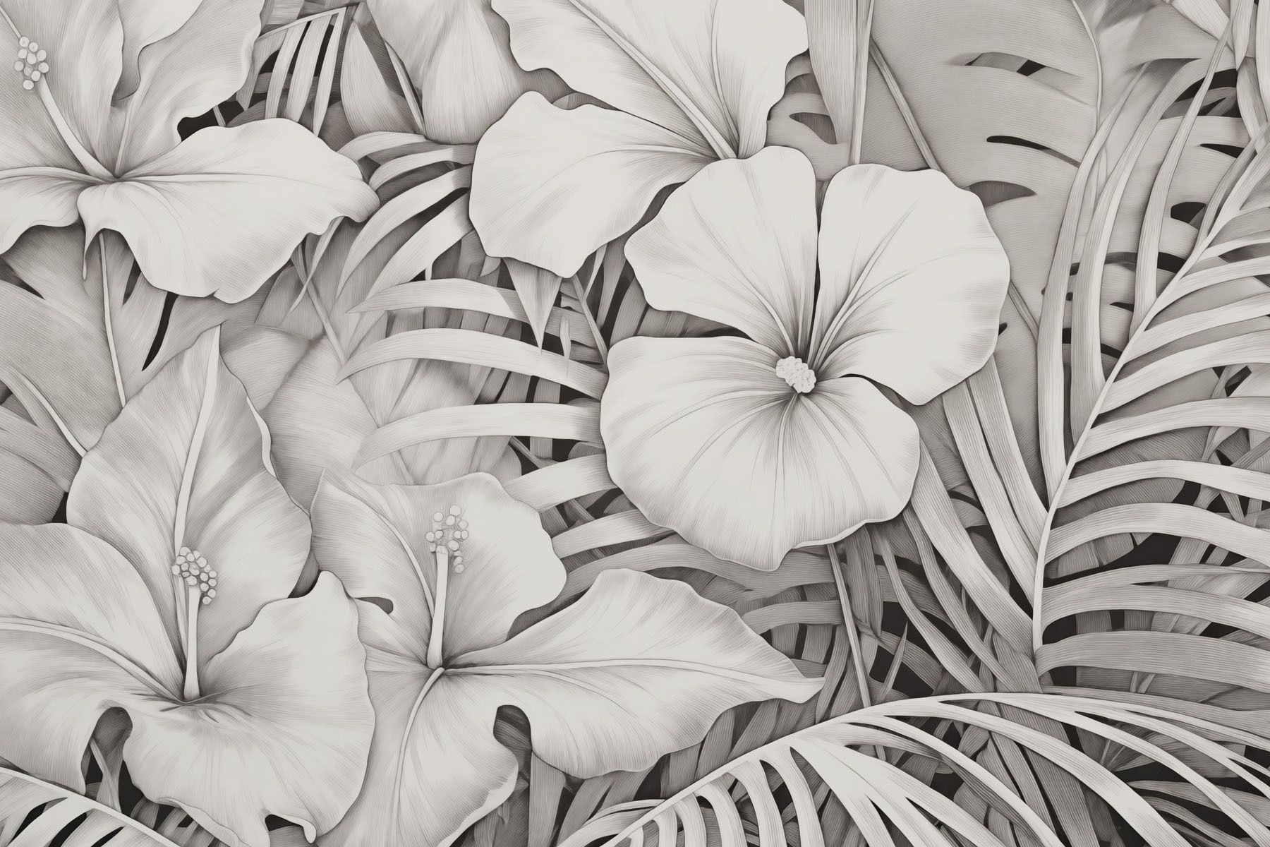 Bármely helyiséget nyugodt oázissá varázsolhat ezzel a lenyűgöző „Finom virágok monokróm árnyalatokban” falfestménnyel. Képzelje el, hogy belép egy szobába, ahol a virágok és levelek lágy vonalai és bonyolult mintái nyugalmat sugároznak. Ez a mű eleganciát áraszt, így tökéletes olvasósarokhoz vagy hangulatos nappalihoz.
