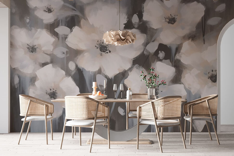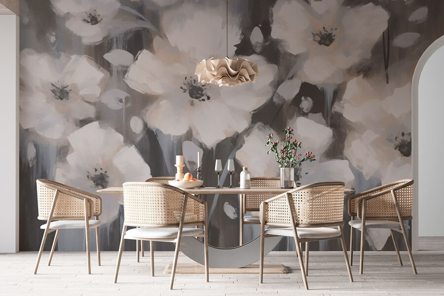 Bármelyik falat nyugodt menedékké varázsolhatja ezzel a lenyűgöző „Fehér virágok falfestményével”. Képzelje el, hogy belép egy szobába, és varázslatos szirmok fogadják, amelyek táncolnak a térben. A lágy árnyalatok finoman sugallják az eleganciát, míg az akvarell mintázat nyugodt hangulatot teremt. Mintha kertje lenne otthonában – méhek nélkül!
