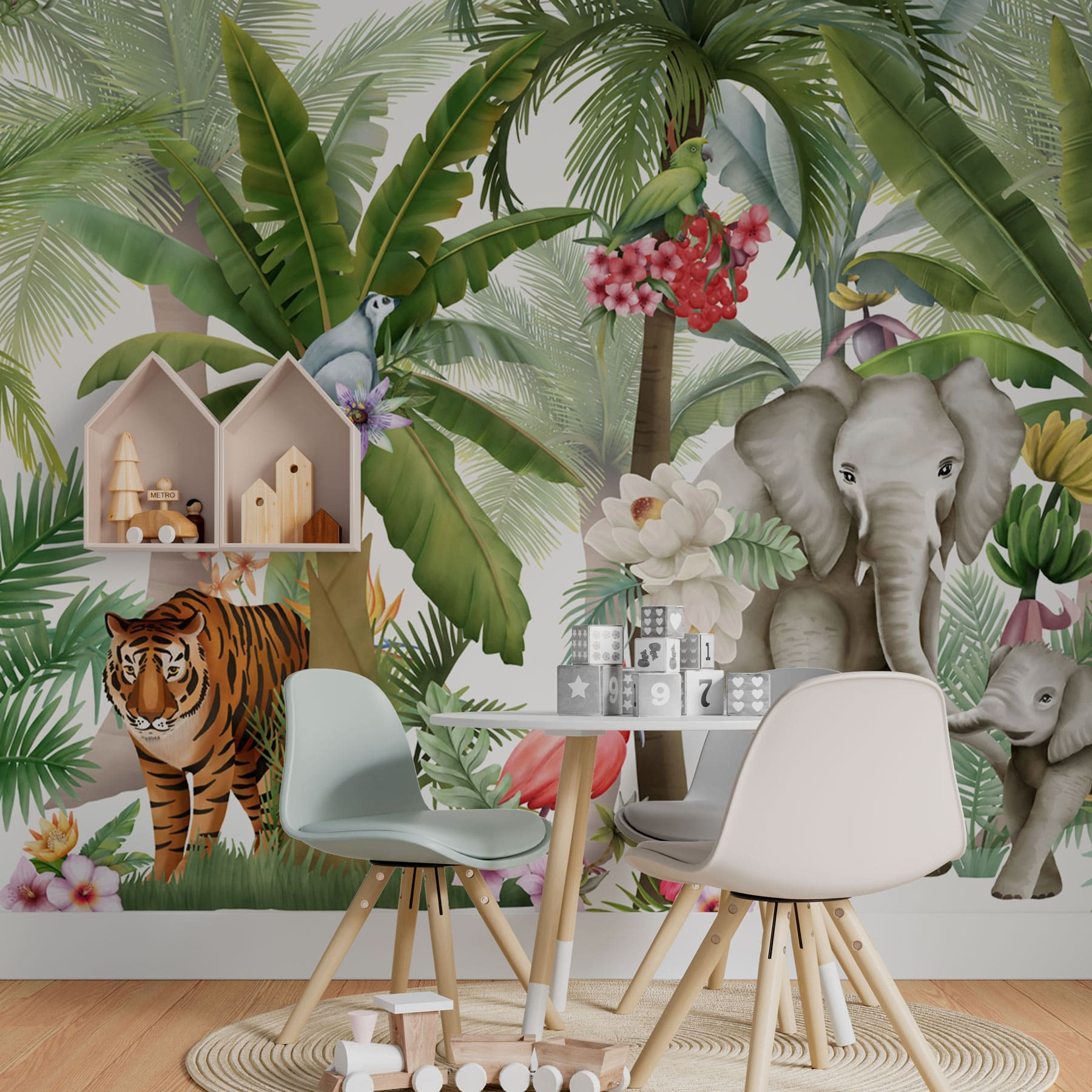 Alakítsd át a teredet ezzel az élénk dzsungel falfestménnyel, ahol játékos majmok hintáznak és fenséges elefántok kóborolnak. Mintha belépnél egy élénk esőerdőbe, csak a szúnyogcsípések nélkül! A buja zöldek és a színes madarak egy megnyugtató és élénkítő hátteret teremtenek. Képzelje el, ahogy reggeli kávéját kortyolgatja, miközben érezni a meleg napot és a szelíd szellőt – ó, várjunk csak, ez csak a kényelmes nappalija! Az állatbarátok számára tökéletes falfestmény a vadvilágot hozza be a lakásba, örömet keltve és minden pillanatot kalanddá téve. Élvezze a trópusi hangulatot egész évben!