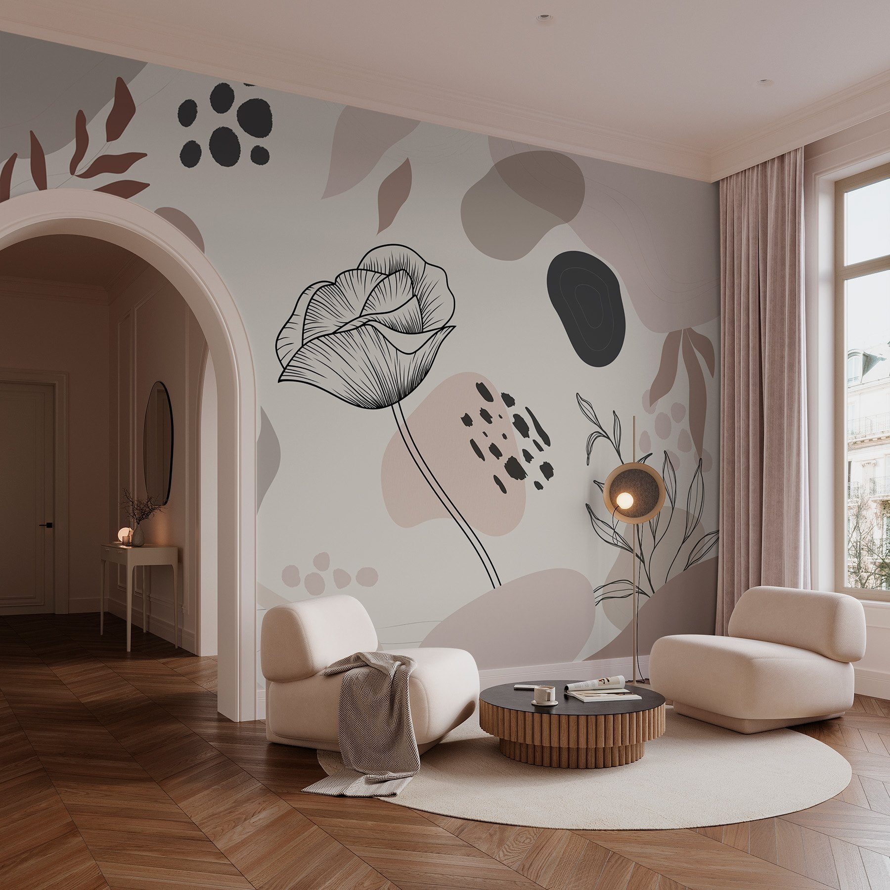 Alakítsa át terét botanikus oázissá ezzel a gyönyörű virágokat és növényeket ábrázoló falfestménnyel. Képzelje el, hogy belép egy hangulatos zugba, ahol úgy érzi, hogy él a természet, ahol minden pillantás a falfestményre a nyugalom és az inspiráció érzetét kelti, szinte mintha egy nyugodt kertben lenne. A lágy akvarell tónusok olyan zökkenőmentesen illeszkednek egymásba, hogy gyakorlatilag átölelik a falat. A barátok elidőznek majd, és megpróbálják felfedezni a műalkotásokban elrejtett formákat és mintákat. Tökéletes azok számára, akik egy csipetnyi természetközeliségre és egy csöppnyi kreativitásra vágynak, ami még a legunalmasabb napokat is egy kicsit feldobja. Engedje hát szabadjára a belső kertrajongóját, és nézze, ahogy a szoba kivirágzik a személyiségtől!