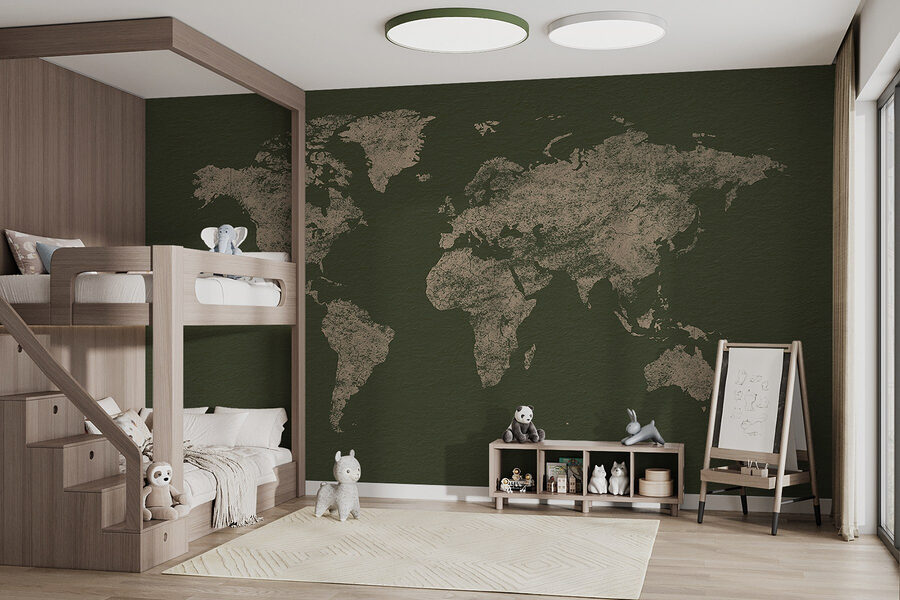 Alakítsd át bármelyik szobát a kalandok világává ezzel a lenyűgöző “A világ térképe” falfestménnyel. Olyan, mintha egy utazótársad lenne közvetlenül a faladon, aki meséket suttog távoli országokról és rejtett kincsekről. A földes tónusok meleg hangulatot árasztanak, tökéletes egy hangulatos olvasósarokba vagy egy üres falra, amely csak egy kis személyiségért könyörög.