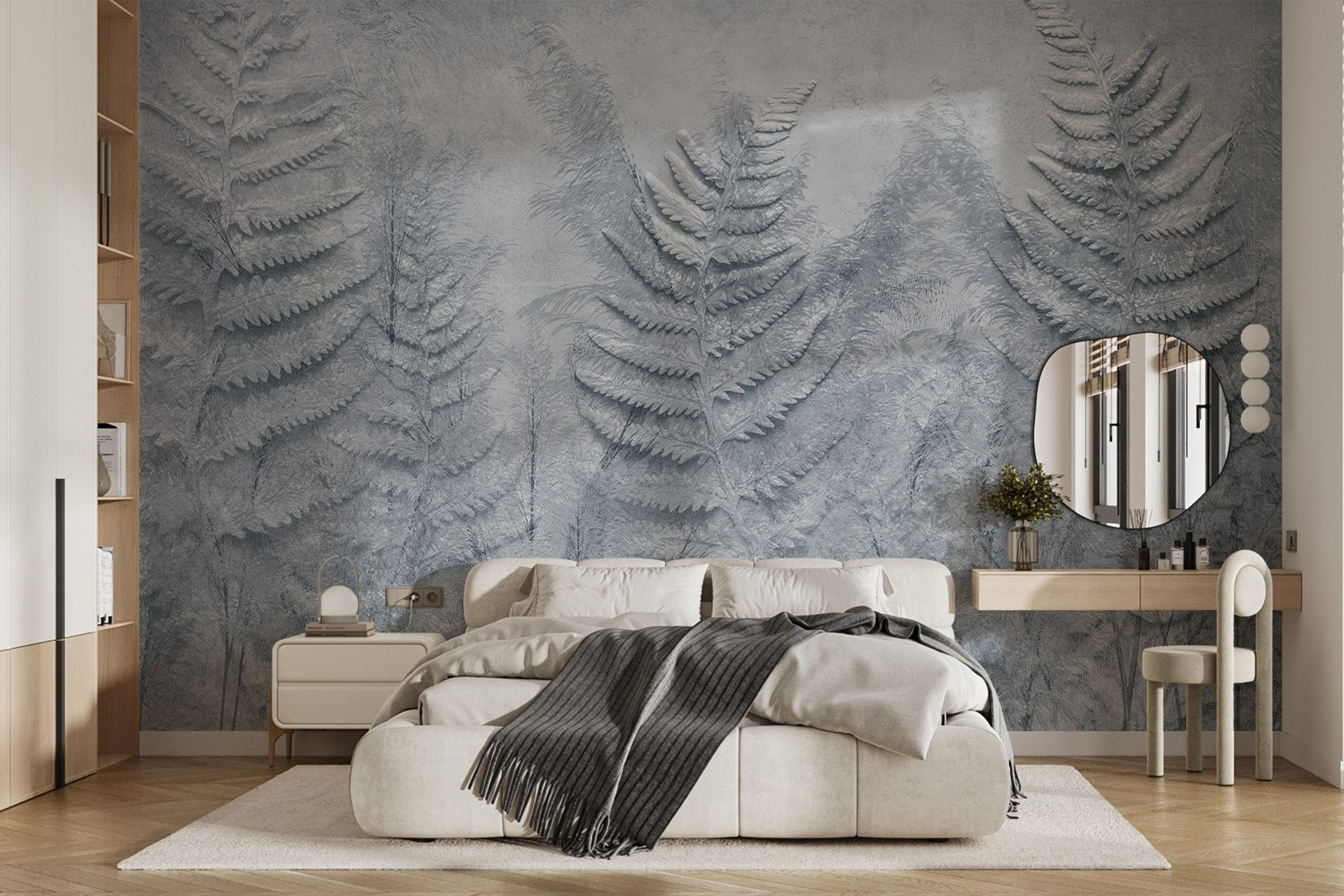 Alakítsa át terét a “Páfránylevelek csoportja” falfestménnyel, ahol a természet és a művészet tökéletes harmóniában táncol együtt. Képzelje el, hogy egy nyugodt erdőbe lép, amelyet a szellőben lágyan ringatózó, finom páfránylevelek vesznek körül. Ez a falfestmény nyugtató ölelésbe burkolja a szobát, azonnal feldobva a hangulatot. Olyan, mintha egy szeletet hozna be a természetből, anélkül, hogy a sáros cipő miatt kellene aggódnia. Képzelje el a hangulatos reggeleket kávéval a kezében, és már a falra pillantva is ihletet érezhet. Ez nem csak dekoráció; ez egy kis emlékeztető a természet szépségére, amely finoman meghívja a nyugalmat a mindennapokba. Tökéletes érintés, amely bármelyik helyiséget egy kicsit barátságosabbá teszi.