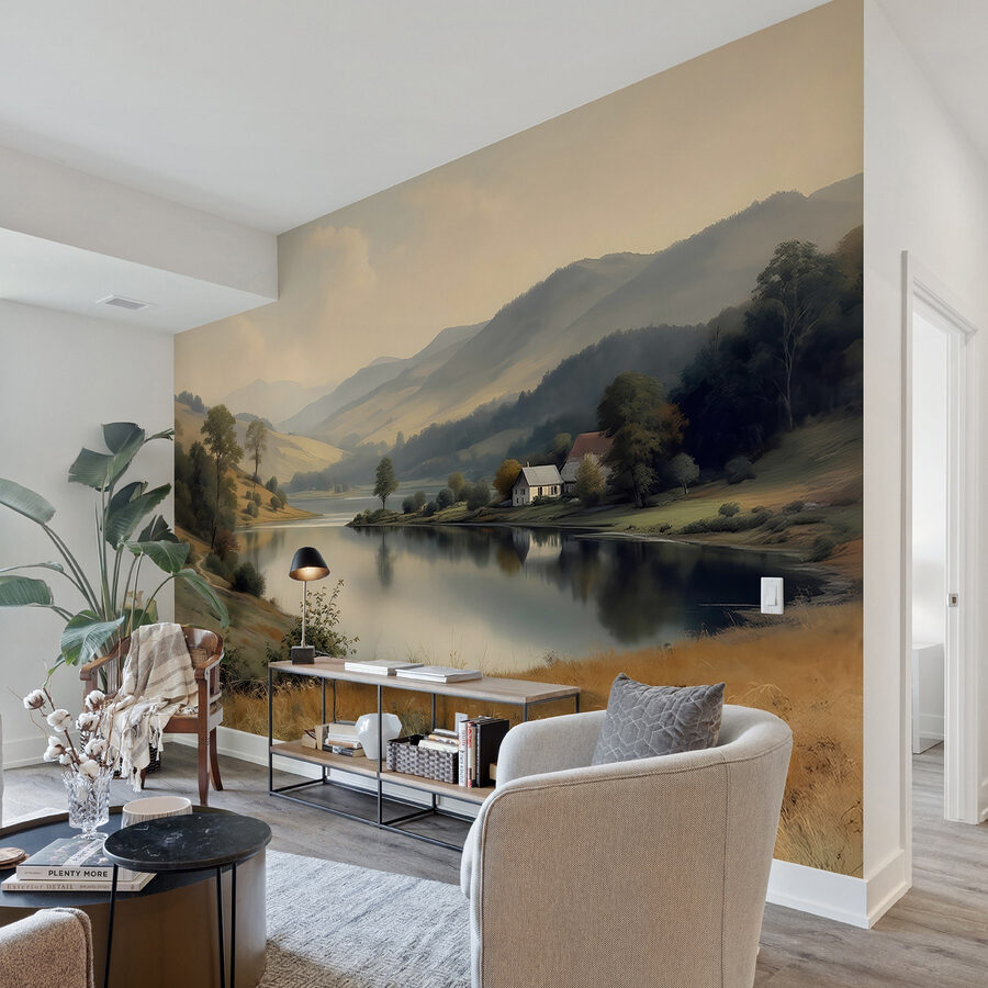 Alakítson át egy unalmas falat nyugodt meneküléssé ezzel a lenyűgöző falfestménnyel, amely egy békés tavat, egy bájos házat és szelíd fákat ábrázol. Képzelje el, ahogy a kanapéra kucorodva kávét szürcsölget, miközben elmerül a nyugodt hangulatban. A lágy árnyalatok a “relax” szót suttogják, miközben nyugalmat hívnak a térbe. Képzelj el egy vasárnap reggel, kint madárcsicsergés, beáramló fény – mintha a természet egy darabkája lenne a nappalidban. Tökéletes a természet szerelmeseinek, vagy bárkinek, akinek szüksége van egy mini kirándulásra a saját otthonában. Miért ne hozhatná be a nyugalom egy kis szeletét a házba?