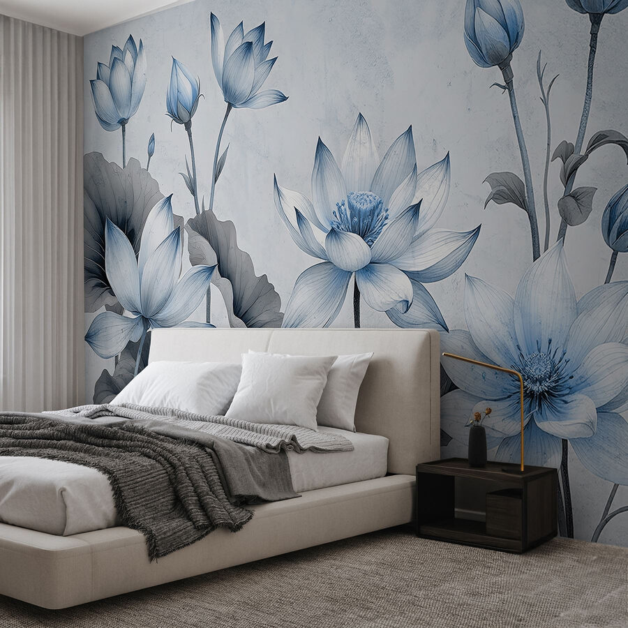Alakítsa át terét nyugtató oázissá a “Szelíd virágokkal nyugodt árnyalatokban”. Ez a kedves falfestmény tele van lágy, álmodozó virágokkal, olyanokkal, amelyek azt suttogják: “Maradj egy kicsit”. Képzelje el, ahogy belép egy szobába, és ezek a kecses szirmok fogadják, mint egy lágy szellő egy napsütéses napon. Az akvarellkékek keveréke köréd borul, nyugalomra és pihenésre invitálva. Ez nem csak dekoráció; ez egy hangulat. Ez a falfestmény tökéletes egy hangulatos olvasósarokba vagy egy nyugodt hálószobába, békés pillanatokra és talán, csak talán, egy kis álmodozásra. Ki ne szeretné ezt?