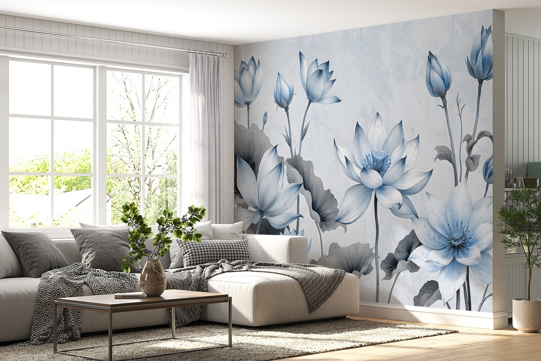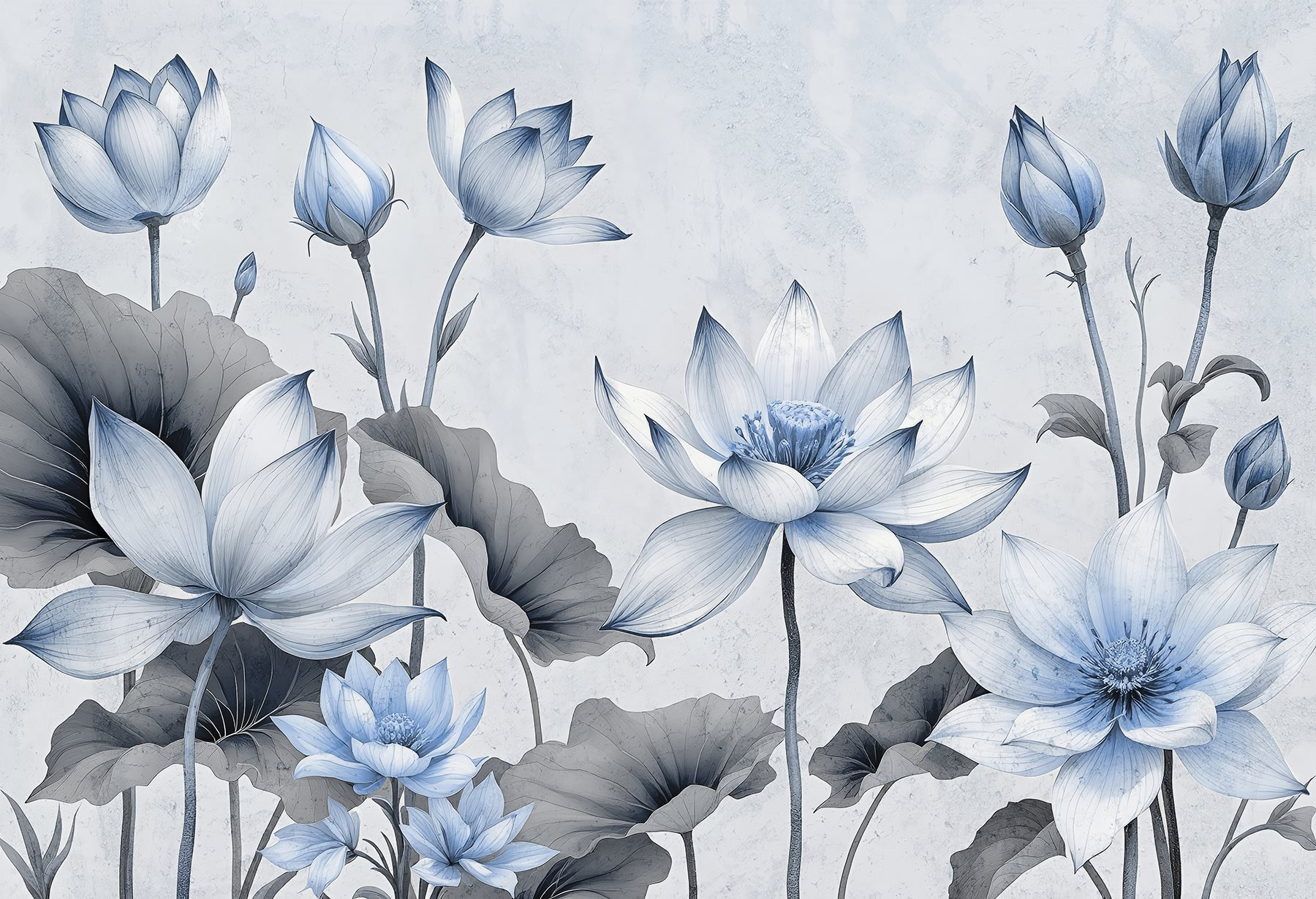 Alakítsa át terét nyugtató oázissá a “Szelíd virágokkal nyugodt árnyalatokban”. Ez a kedves falfestmény tele van lágy, álmodozó virágokkal, olyanokkal, amelyek azt suttogják: “Maradj egy kicsit”. Képzelje el, ahogy belép egy szobába, és ezek a kecses szirmok fogadják, mint egy lágy szellő egy napsütéses napon. Az akvarellkékek keveréke köréd borul, nyugalomra és pihenésre invitálva. Ez nem csak dekoráció; ez egy hangulat. Ez a falfestmény tökéletes egy hangulatos olvasósarokba vagy egy nyugodt hálószobába, békés pillanatokra és talán, csak talán, egy kis álmodozásra. Ki ne szeretné ezt?
