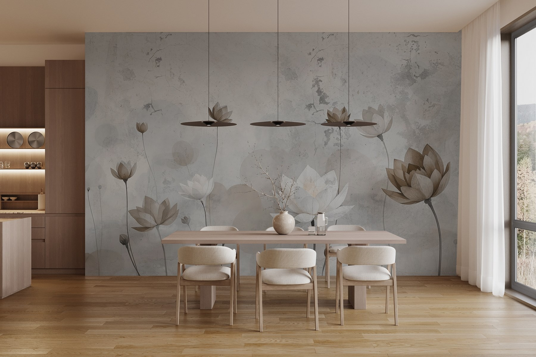 Képzelje el, hogy belép egy olyan szobába, amely azonnal olyan, mint egy nyugodt kerti menedék. Ez a falfestmény a magas szárakon lágyan ringatózó, finom virágokkal ezt a nyugodt hangulatot hozza el otthonába. A lágy színek zökkenőmentesen keverednek, és olyan nyugalmat árasztanak, amely azt suttogja: “Vegyél egy nagy levegőt, megérkeztél”. Tökéletes egy hangulatos olvasósarokba vagy arra a falra, amelyiknek csak egy kis szeretetre van szüksége, a természet szépségét örökíti meg a folyamatos karbantartás nélkül. Képzelje el, ahogy teát szürcsölgetve sütkérezik ebben a virágos csodában. Olyan, mintha egy titkos kertje lenne – mínusz a sár. Hagyja tehát, hogy azok a falak kivirágozzanak és új életet leheljen a helyiségébe!