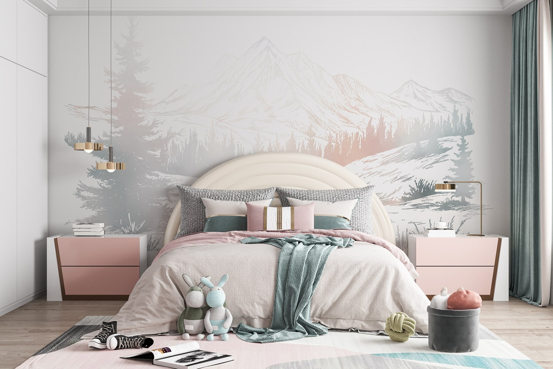 Bármilyen teret alakítson át nyugodt pihenőhellyé ezzel a gyönyörű falfestménnyel, amely fák és hegyek lágy tájképét ábrázolja. Olyan, mintha a természet egy szeletét hozná be a házba anélkül, hogy bogarakkal kellene küzdenie vagy kiszámíthatatlan időjárást kellene elviselnie. Képzelje el, ahogy a reggeli kávéját kortyolgatva a fenséges hegycsúcsokat és a buja zöldet bámulja – ez tiszta boldogság! Ez a falfestmény nem csak dekoráció; ez egy menekülés. Tökéletes egy hangulatos olvasósarokba vagy egy nyugtató hálószobai hangulathoz. Ráadásul nagyszerű hátteret biztosít az “épp most ébredtem” szelfikhez. A természet szerelmesei örüljenek!