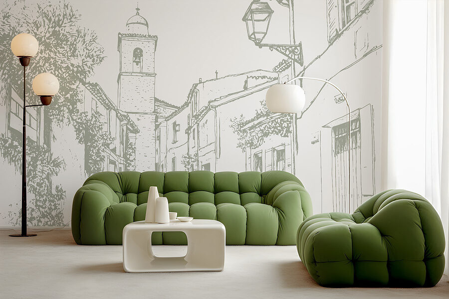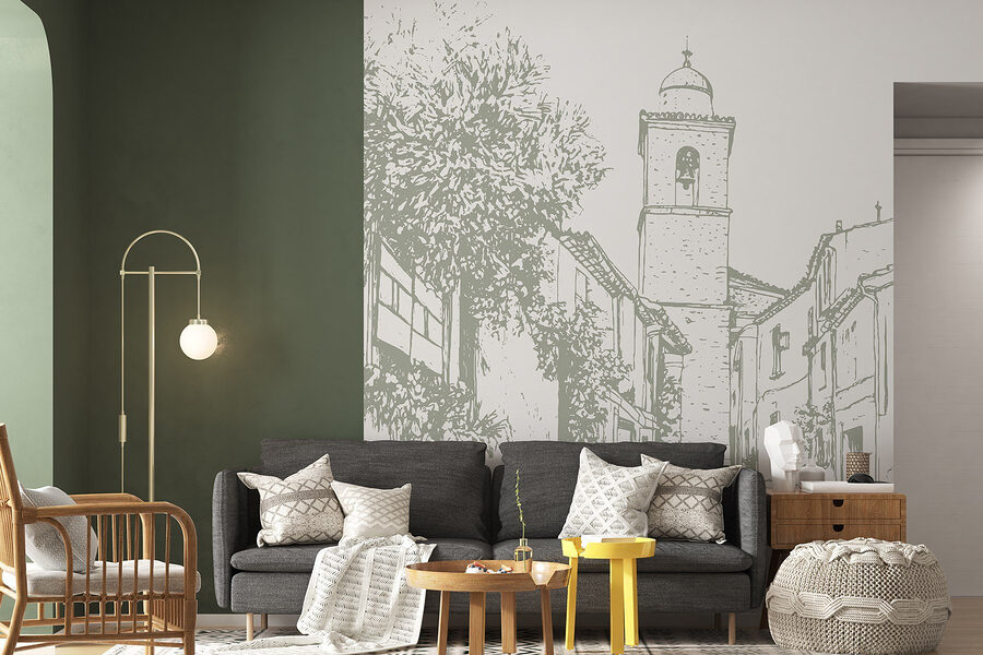 Alakítsa át terét ezzel a bájos falfestménnyel, amely egy festői utcát ábrázol, egy szép harangtoronnyal. Olyan, mintha egy nyugodt faluba lépnél be minden alkalommal, amikor arra jársz. Képzelje el, ahogy egy hangulatos zugban kávét szürcsölget, miközben falai békés hangulatot árasztanak. Az épületek lágy körvonalai és a buja zöld növényzet nyugalmat áraszt, amely tökéletes a hosszú nap utáni kikapcsolódáshoz. Ez a falfestmény megteremti az utazással és kalanddal kapcsolatos álmodozások színterét. Hagyja, hogy történetekre inspiráljon, és melegséget vigyen bármelyik szobába – mert ki ne szeretne egy csipetnyi szeszélyt az életébe?